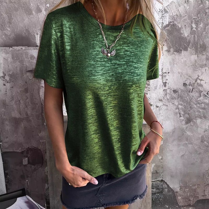 💗🥳 Damska koszulka z krótkim rękawem i okrągłym dekoltem z nadrukiem