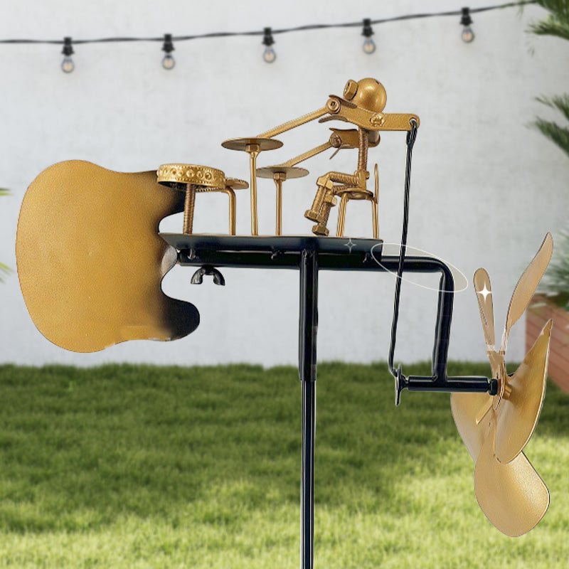 Ręcznie robiony metalowy wiatraczek z bębnem - dekoracja naziemna