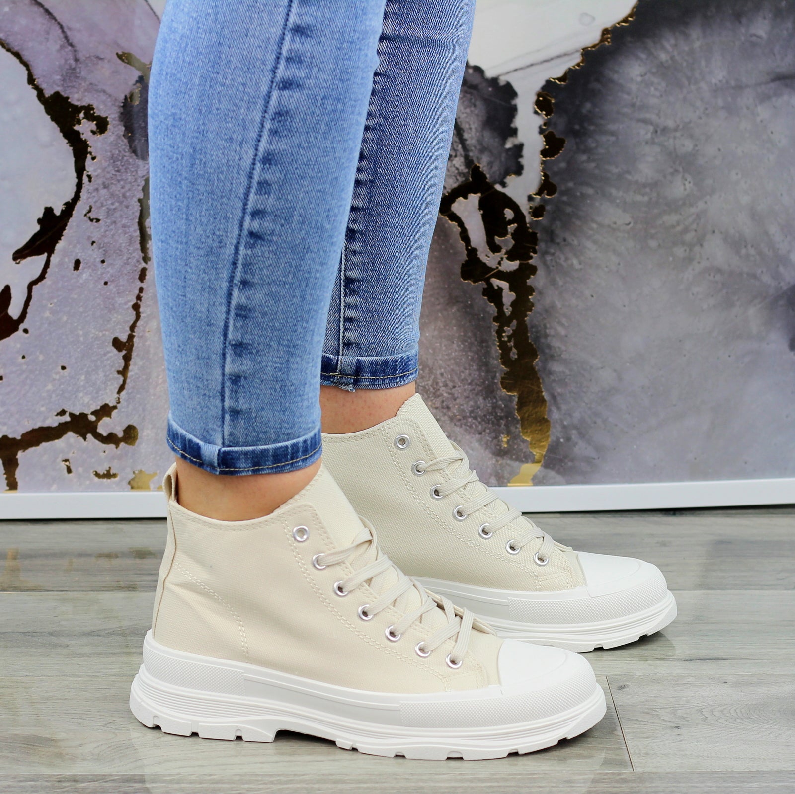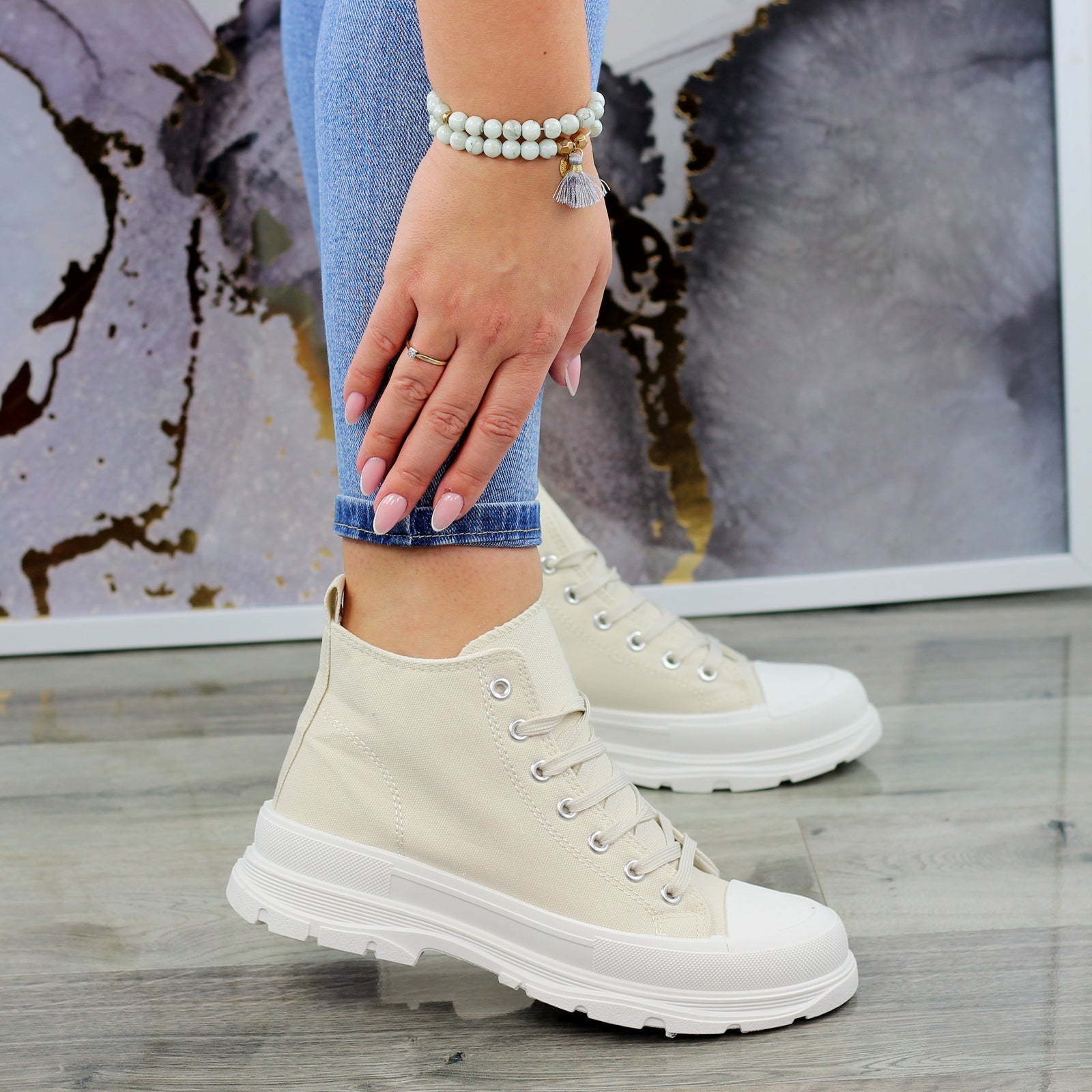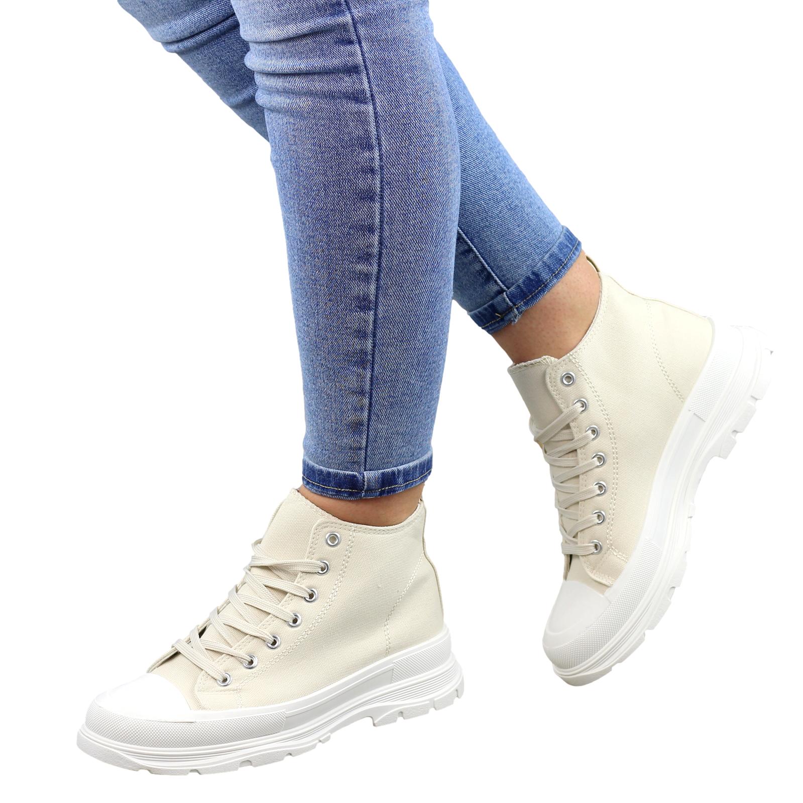 BEŻOWE WYŻSZE SZNUROWANE TRAMPKI DAMSKIE STAR