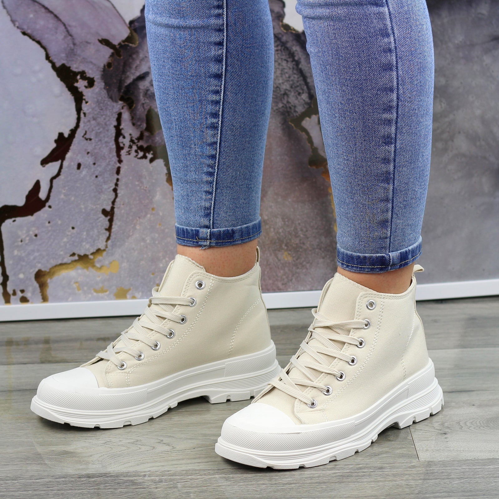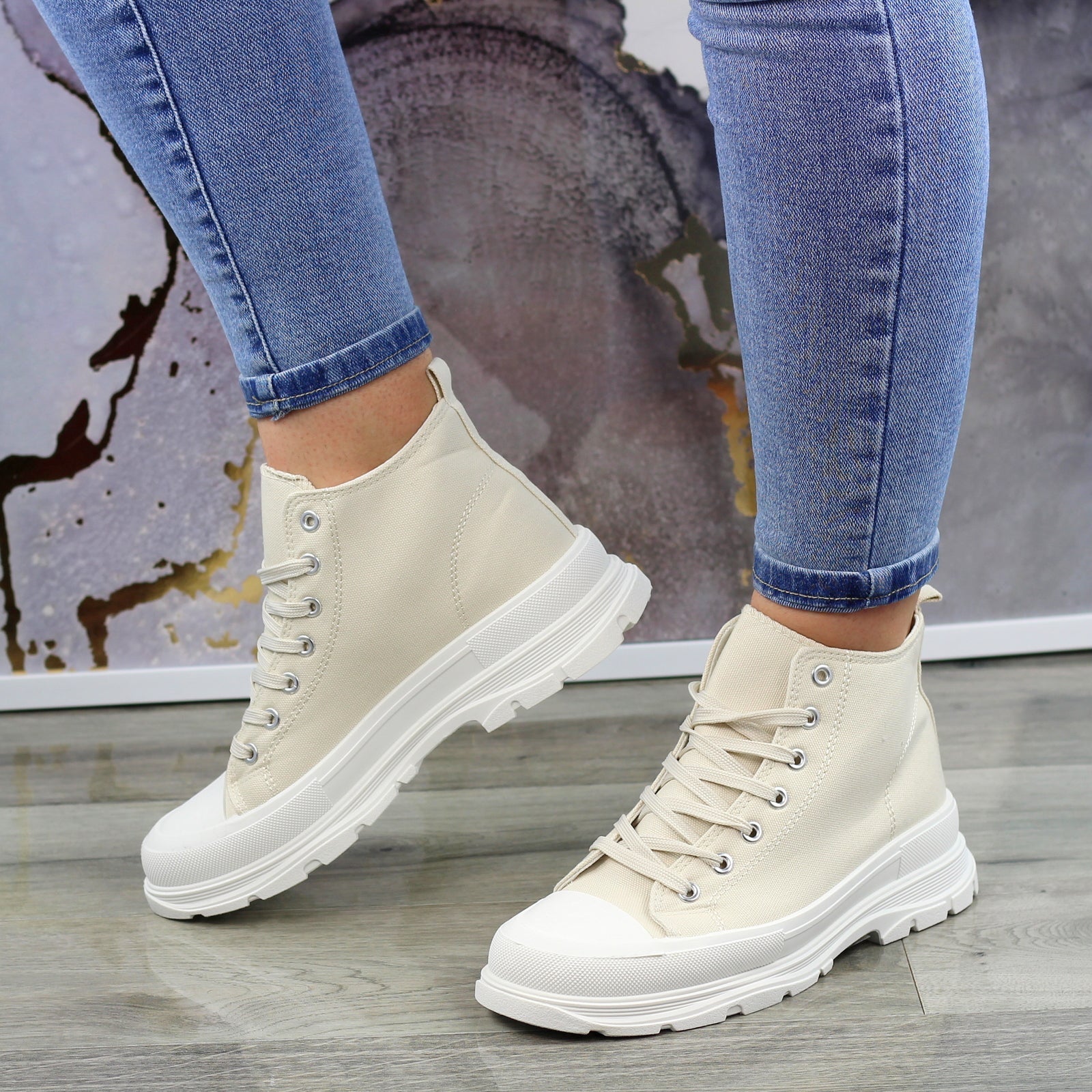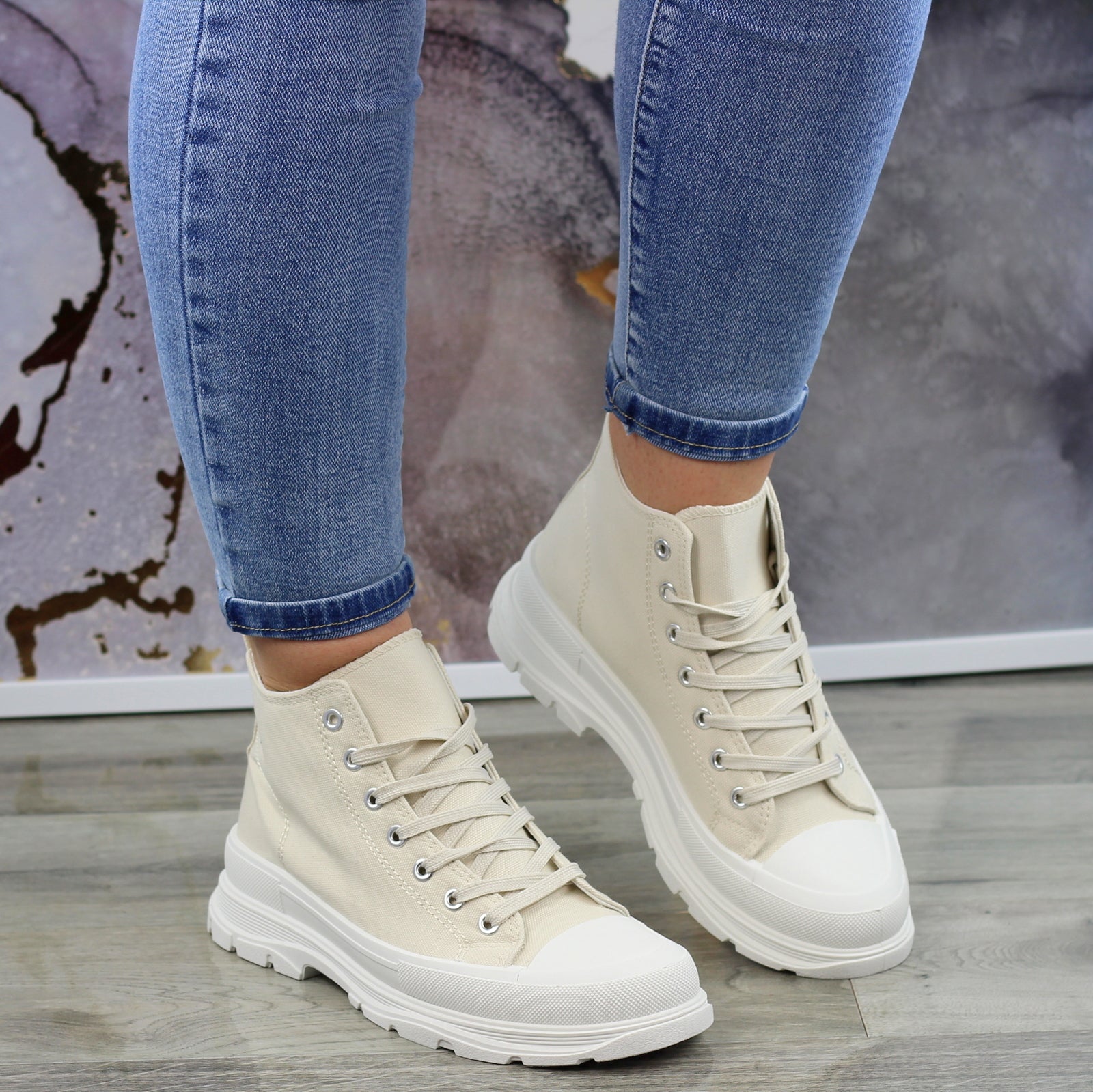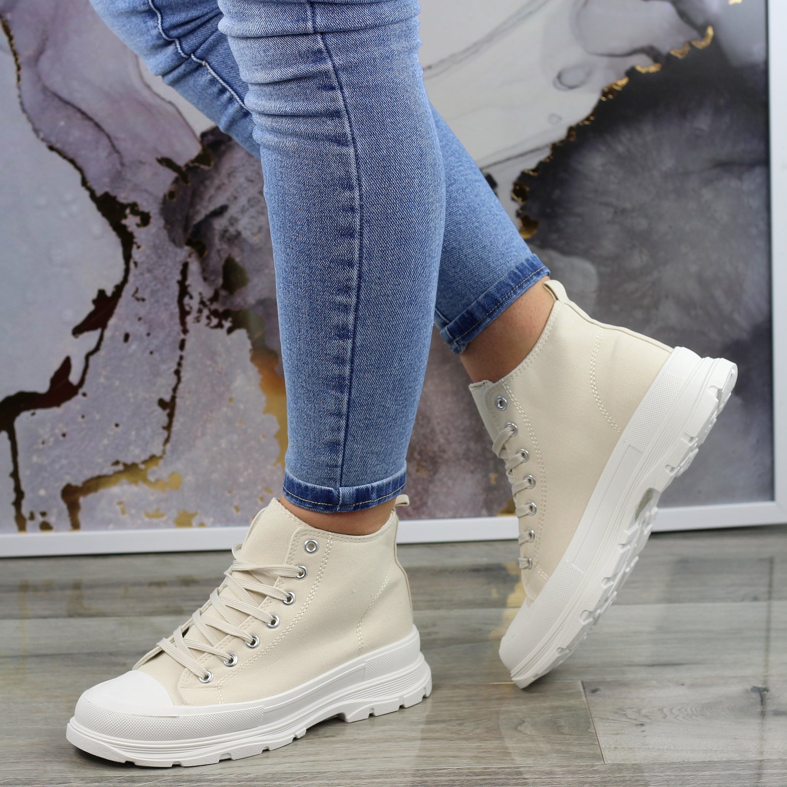 BEŻOWE WYŻSZE SZNUROWANE TRAMPKI DAMSKIE STAR