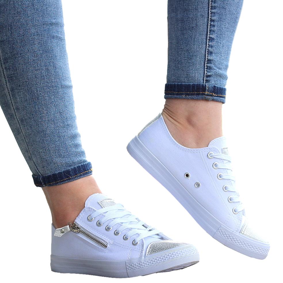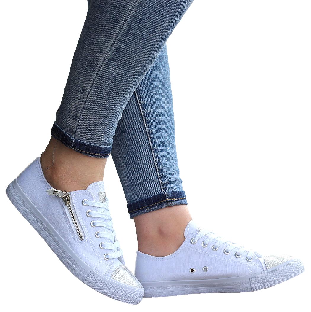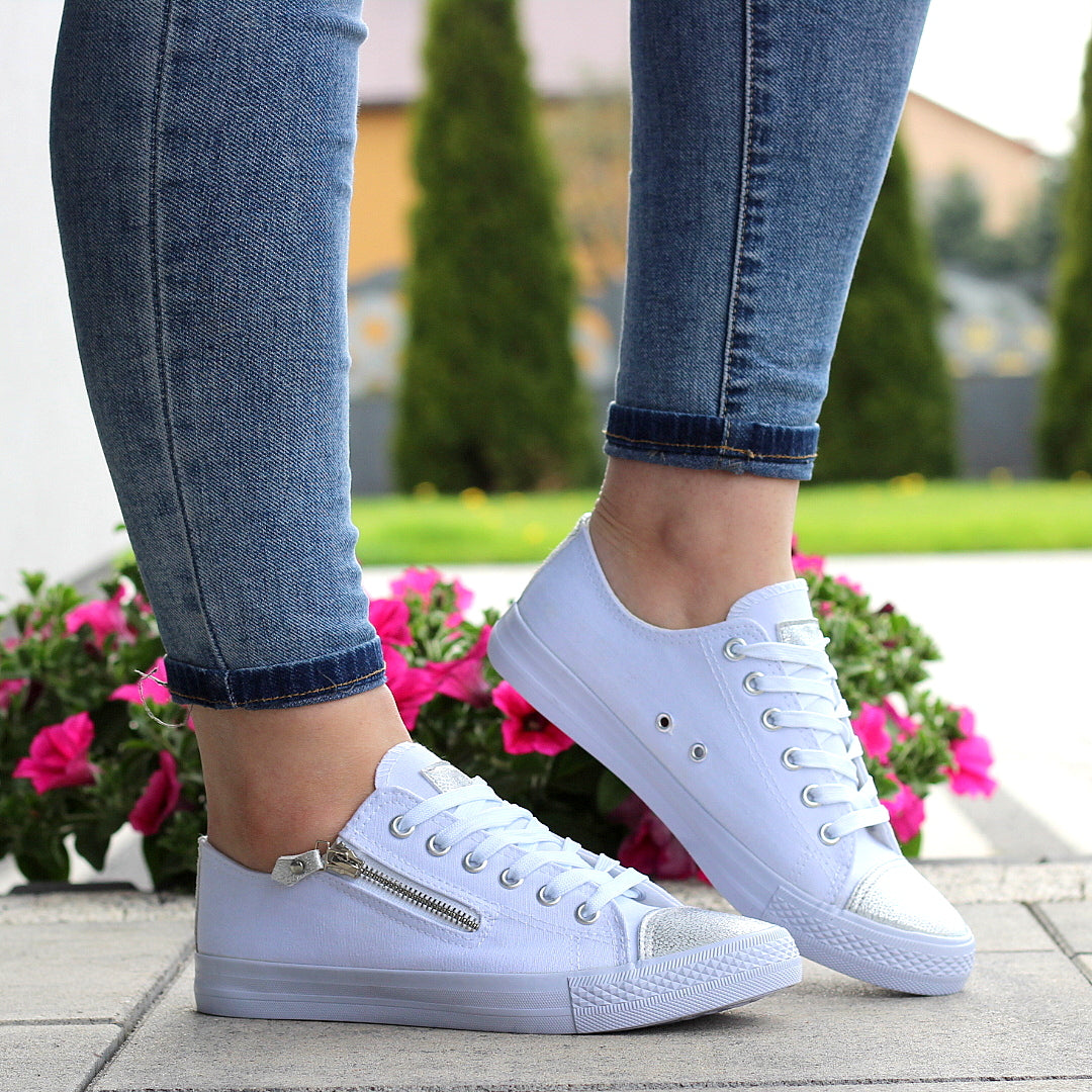 Białe miękkie tenisówki materiałowe slim suwaczek