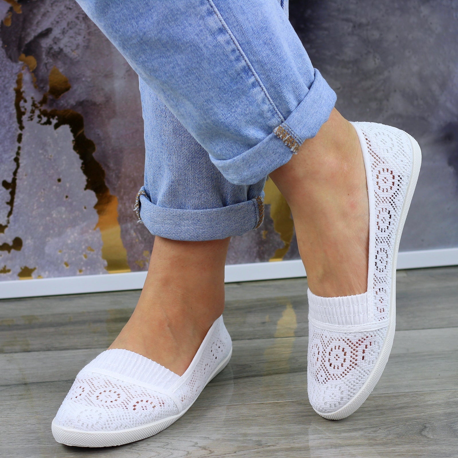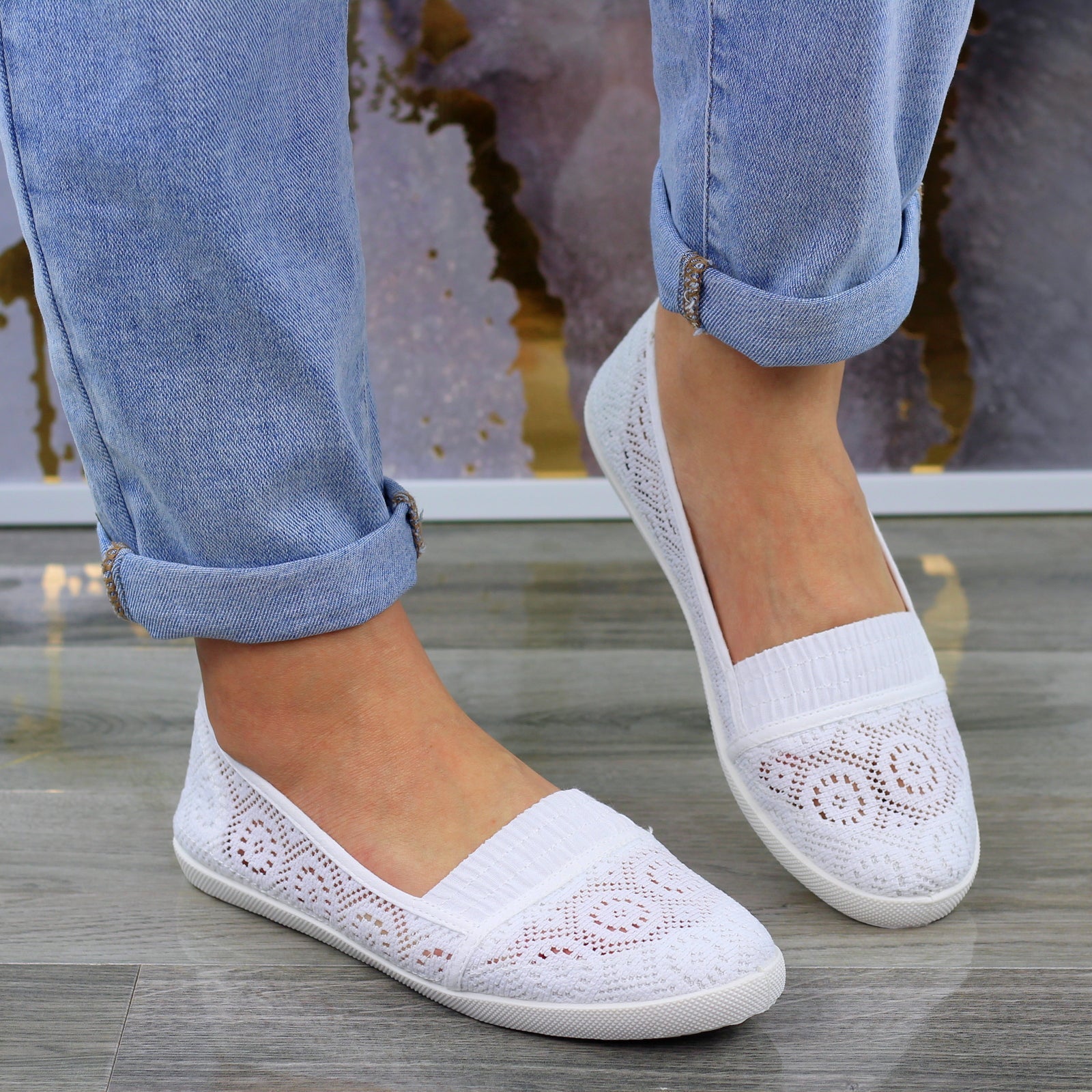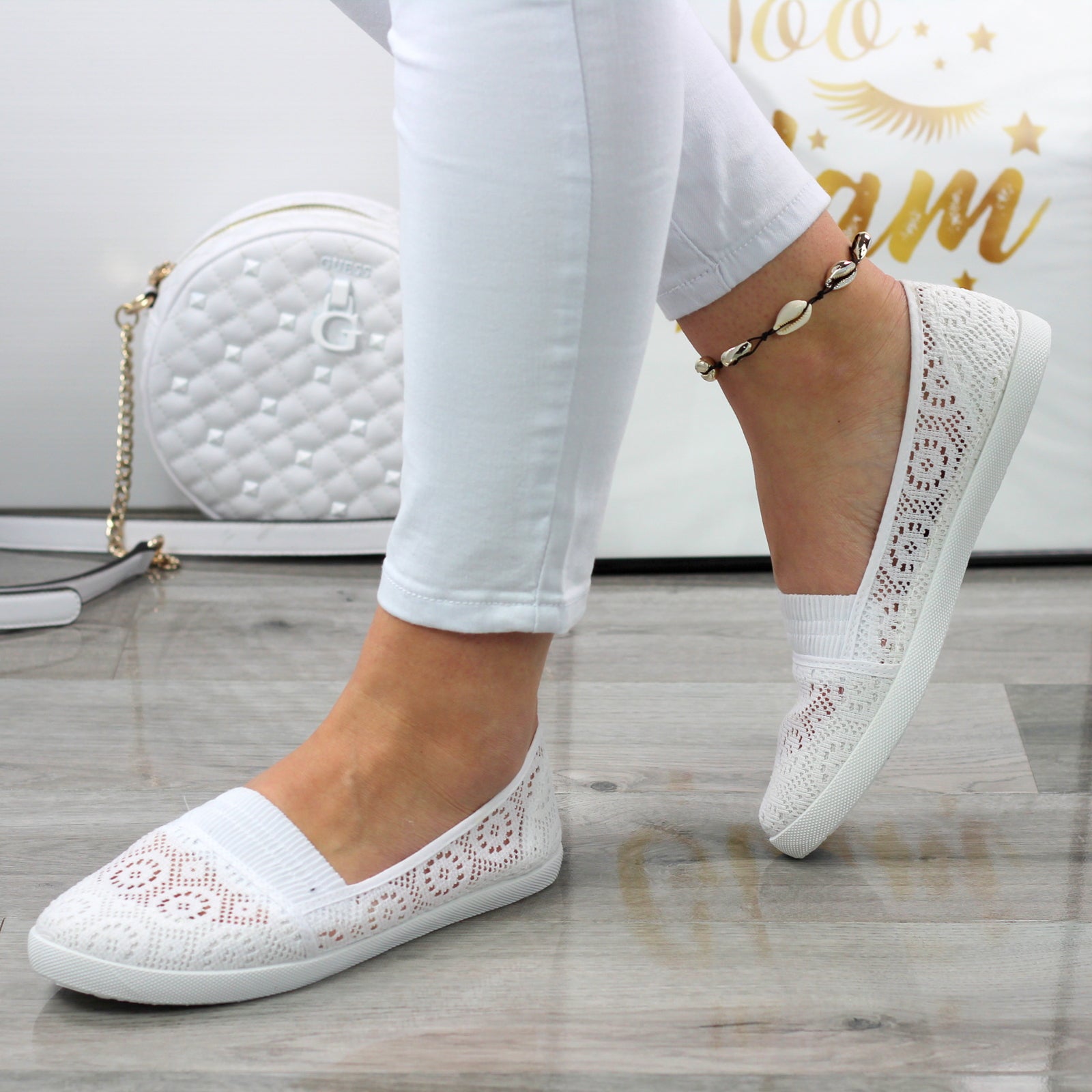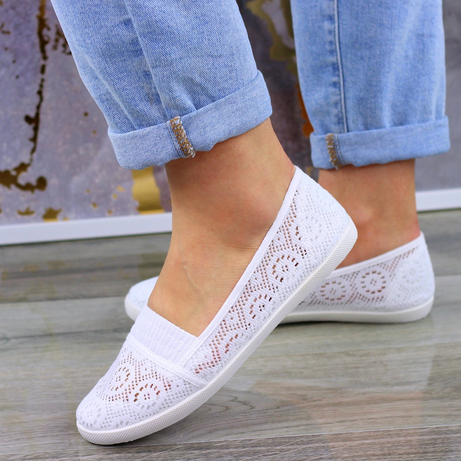 Białe Wygodne Koronkowe Trampki Tenisówki Gumka