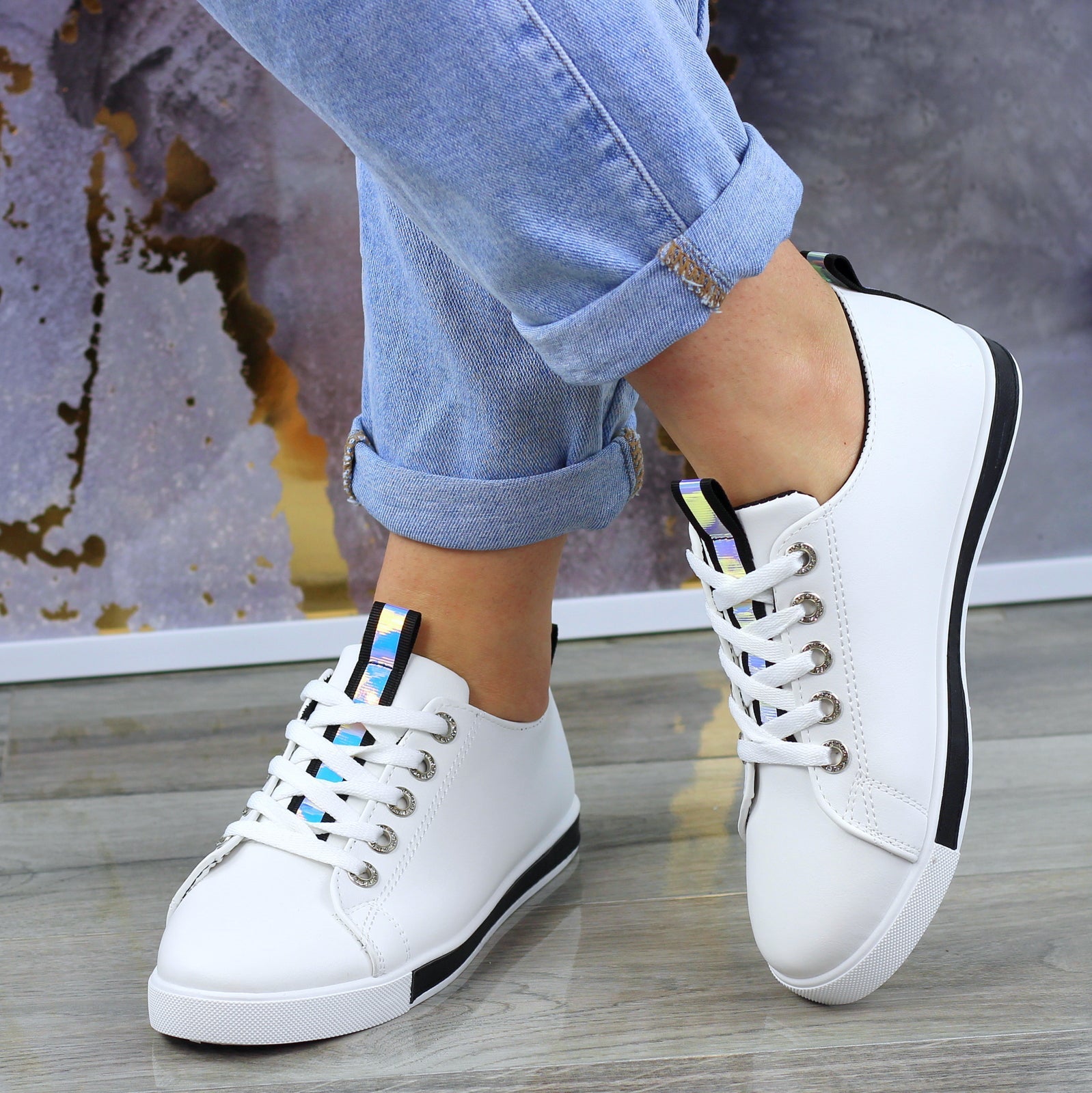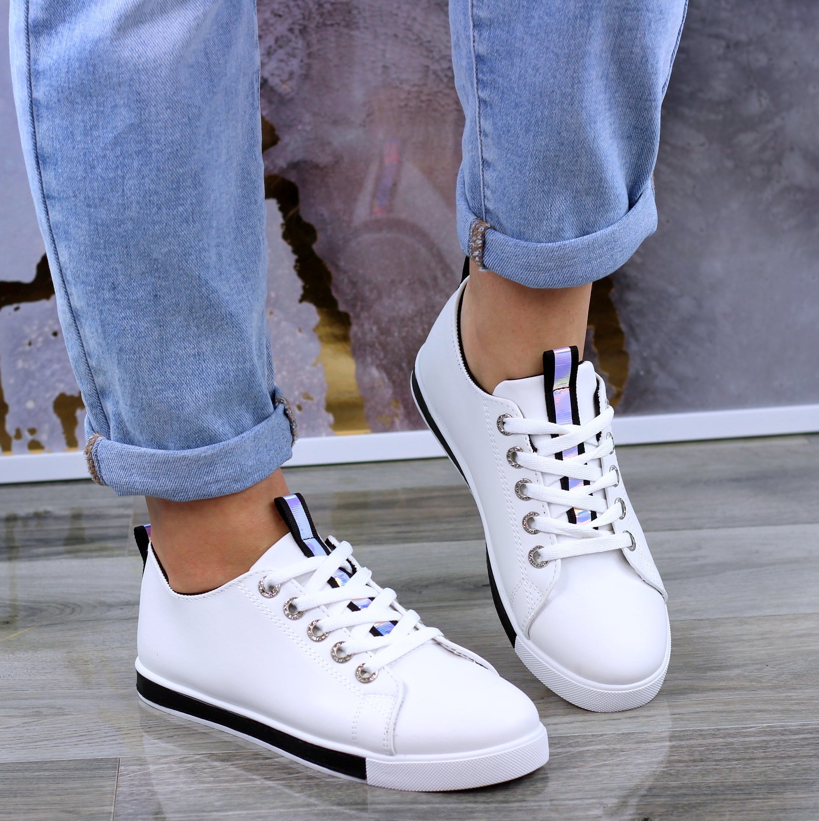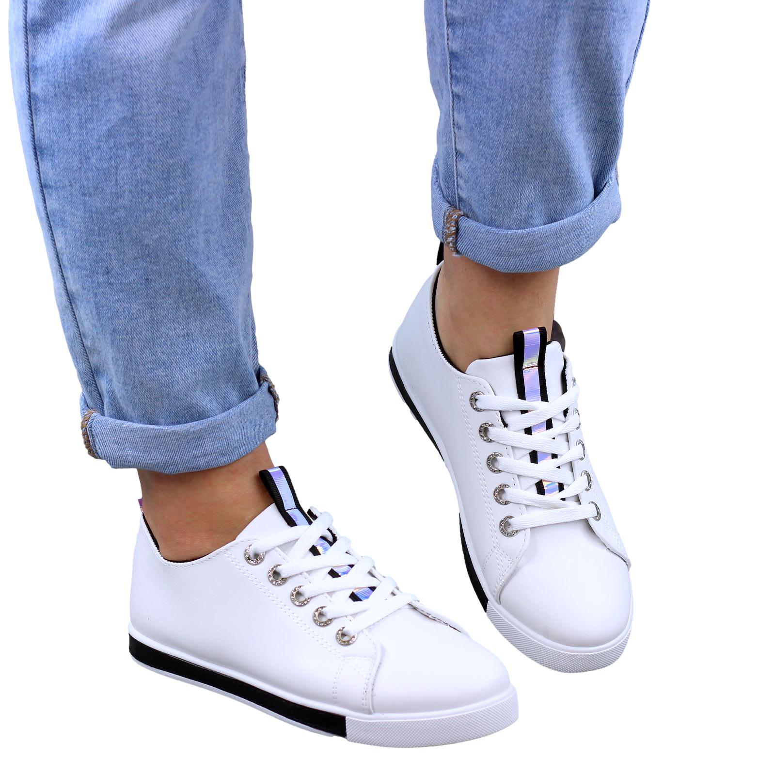 BIAŁO CZARNE SKÓRZANE GŁADKIE TRAMPKI DAMSKIE efekt holo
