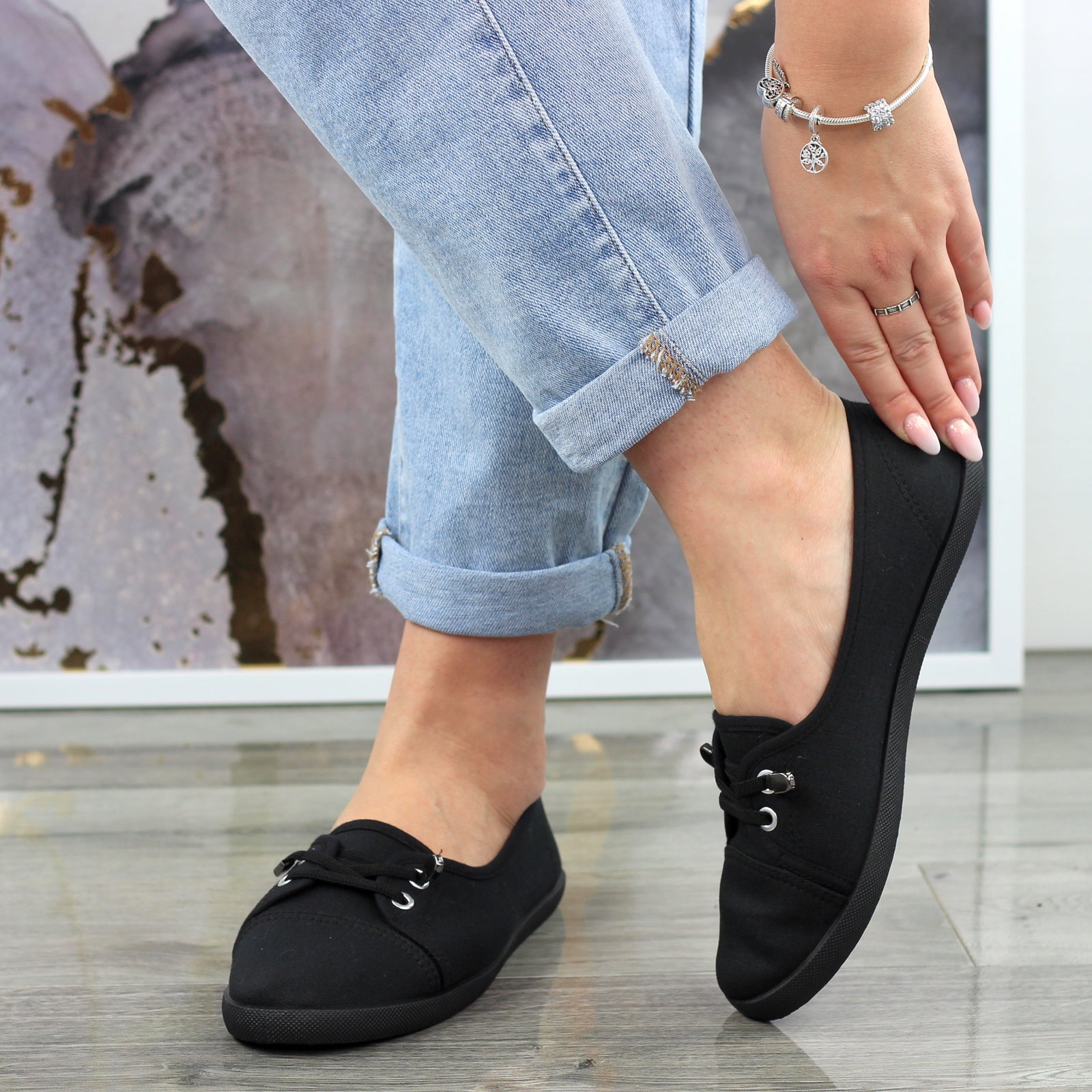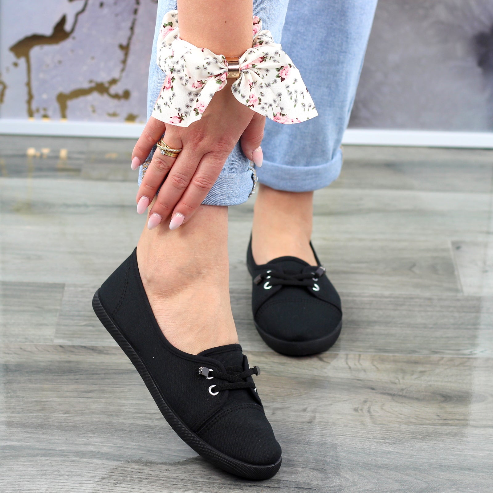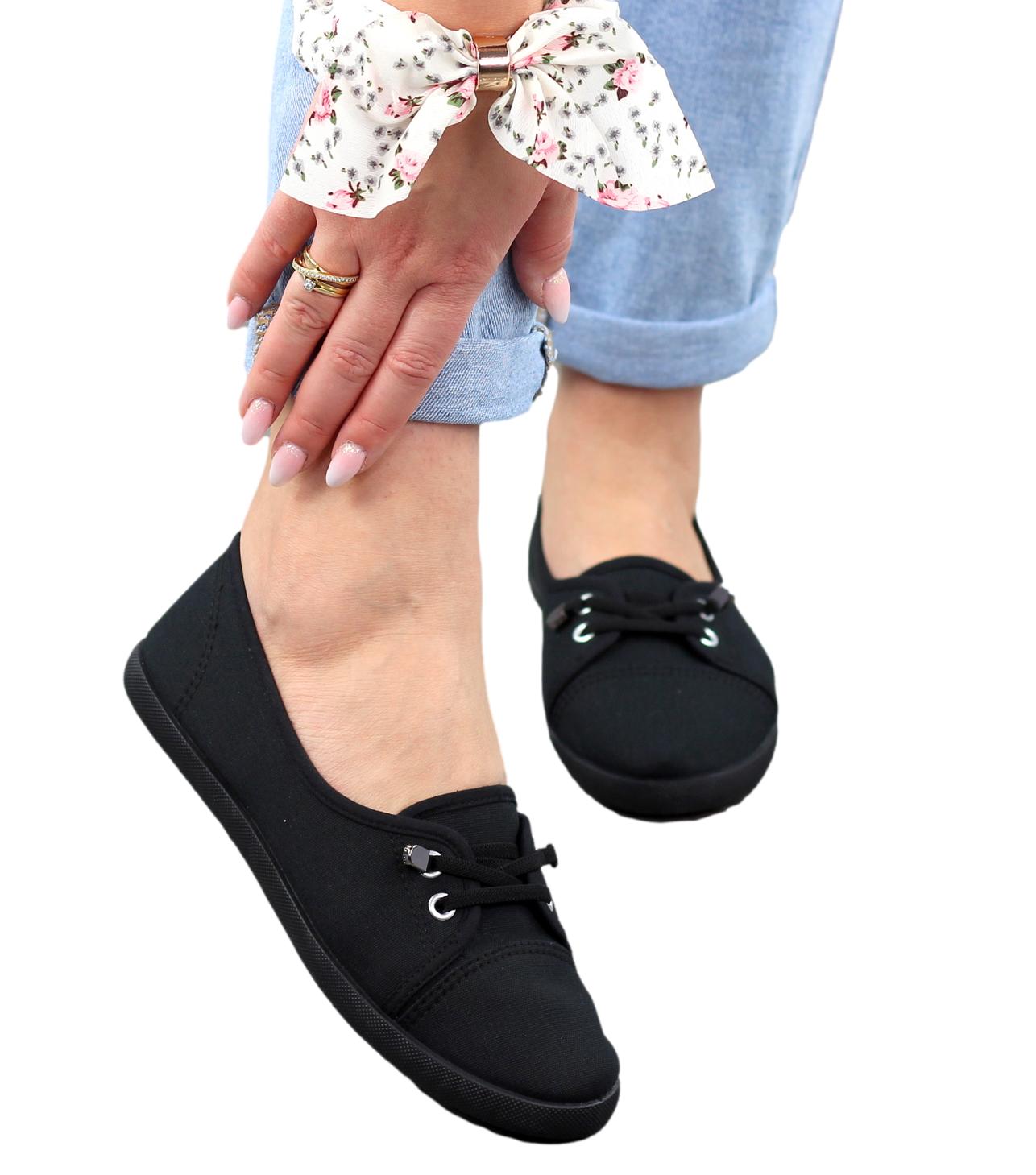 CZARNE MATERIAŁOWE WYCIĘTE TENISÓWKI BALERINKI DAMSKIE NA LATO