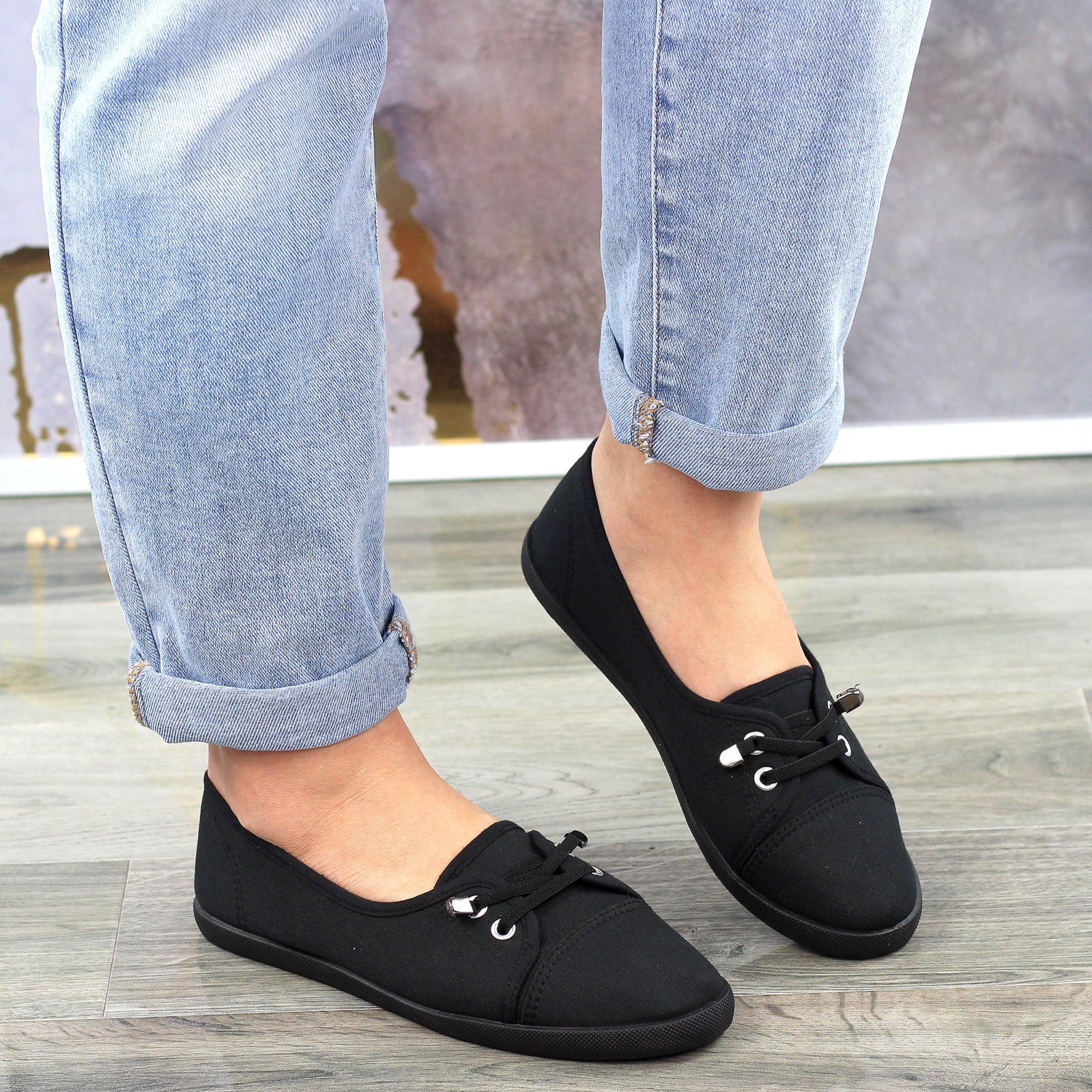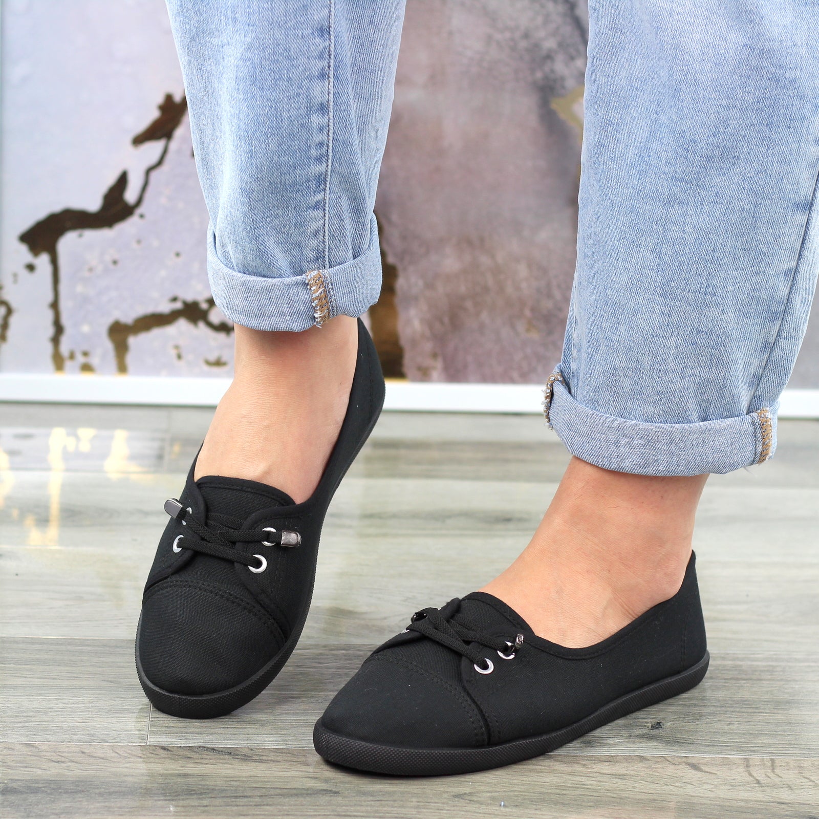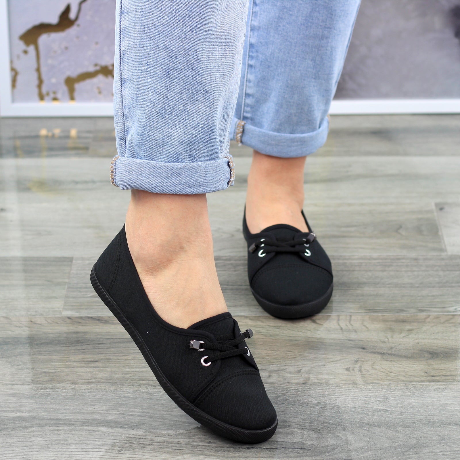 CZARNE MATERIAŁOWE WYCIĘTE TENISÓWKI BALERINKI DAMSKIE NA LATO