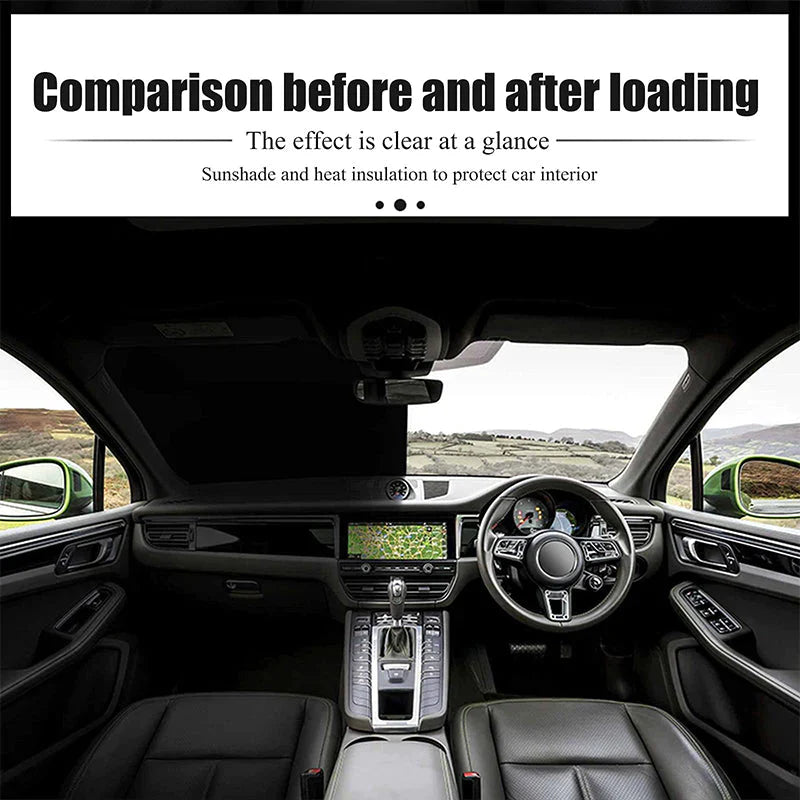 - ☂Skuteczna ochrona przed palącym słońcem i upałem: Promienie UV mogą z czasem uszkodzić elektronikę, deskę rozdzielczą, skórę i siedzenia w samochodzie. Osłony przeciwsłoneczne zostały zaprojektowane tak, aby zapewnić chłód i komfort w środku pojazdu. Zapobiegają również blaknięciu i pękaniu deski rozdzielczej. Dwuwarstwowe pogrubienie, solidna osłona przeciwsłoneczna.