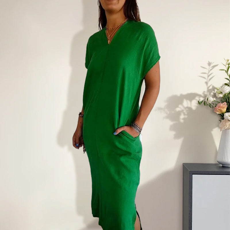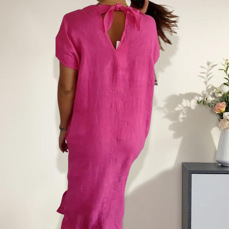 🌺Damska bawełniana i lniana sukienka z dekoltem w kształcie litery V i wycięciem