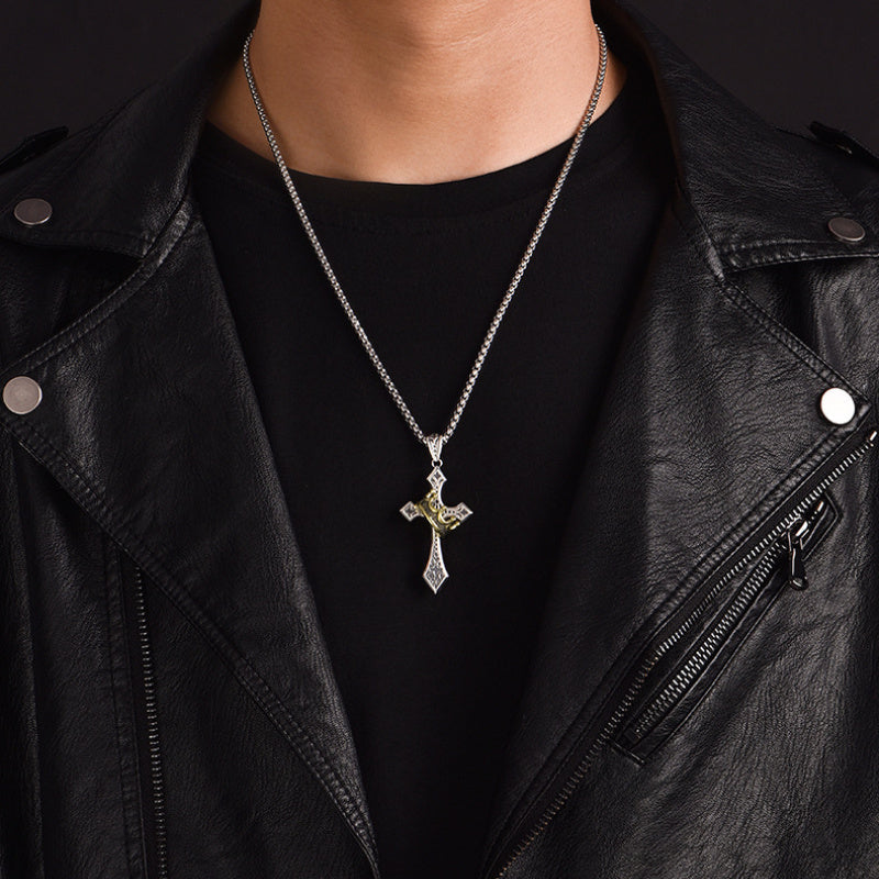 Noś symbol boskiego autorytetu i nieustraszonej wiary . Wisiorek Kingdom Cross & Crown to śmiałe połączenie duchowej siły . Wykonany z najwyższej jakości stali nierdzewnej, srebrny krzyż zdobią ozdobne wycięcia i zwieńczony jest królewską koroną w kolorze złota. To coś więcej niż naszyjnik – to wyrazisty akcent.