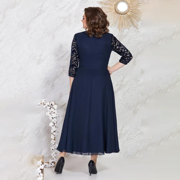 【Tkanina】 ---- Haftowana kwiecista koronka dodaje tej sukience odrobinę słodyczy. Ta damska sukienka midi ma dopasowany krój i elegancką sylwetkę.