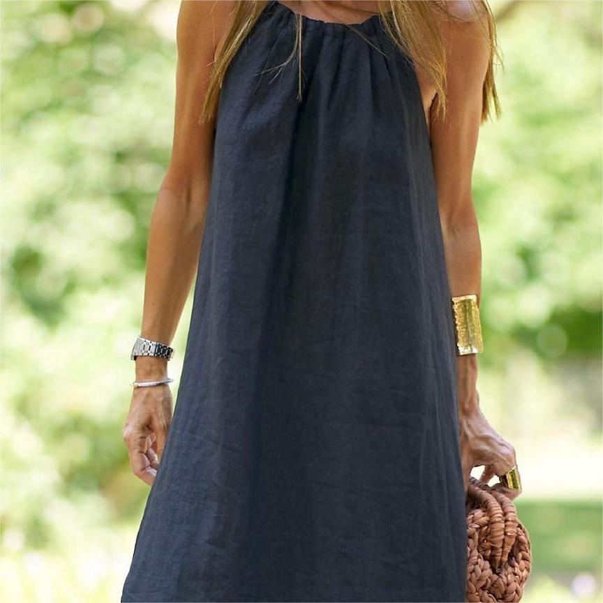 💃Jednokolorowa, luźna, oddychająca sukienka z ramiączkami💛