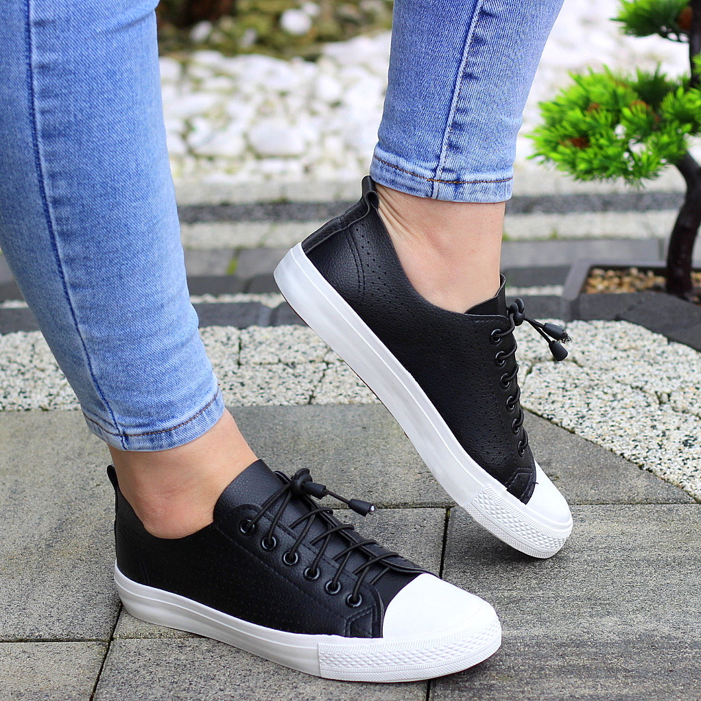 Czarne trampki w dziurki mięciutkie sznurowane slim na wygodnej podeszwie .