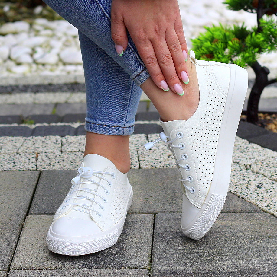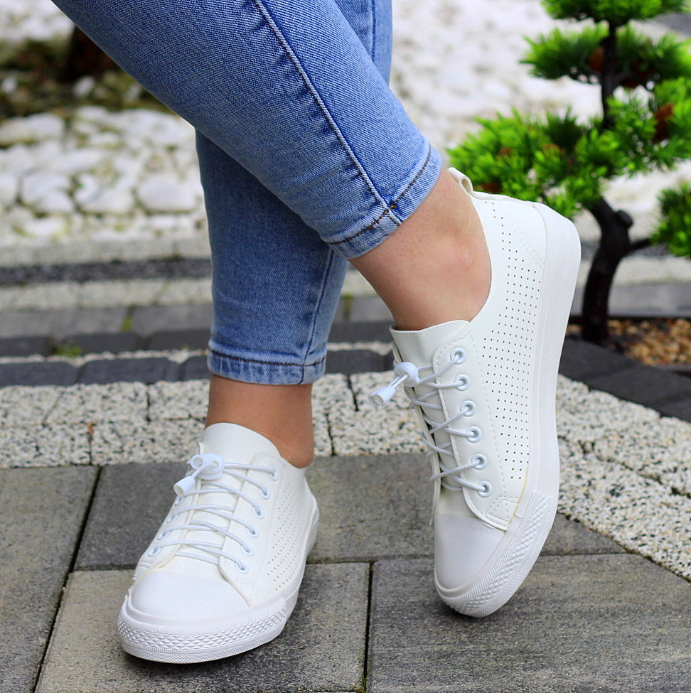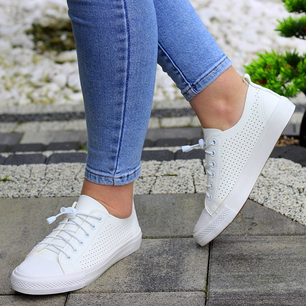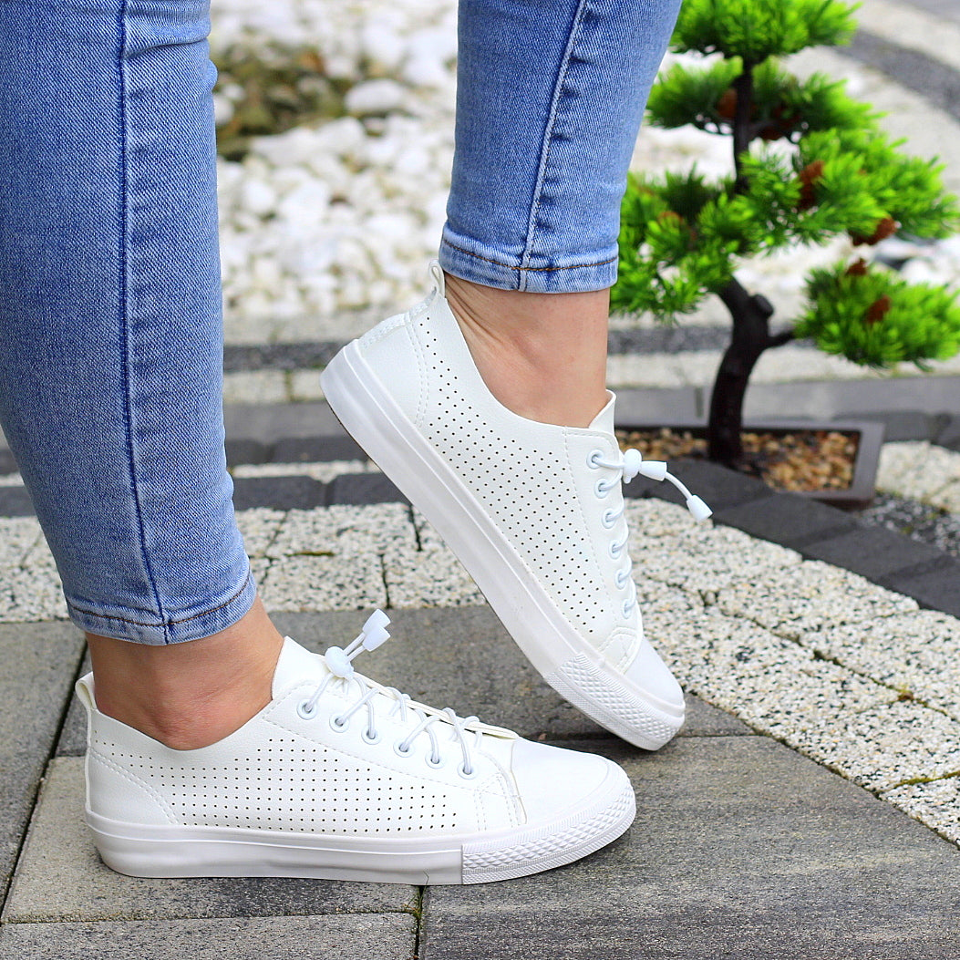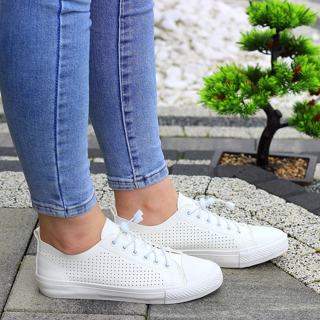 Miękkie, wygodne białe tenisówki damskie w dziurki Great