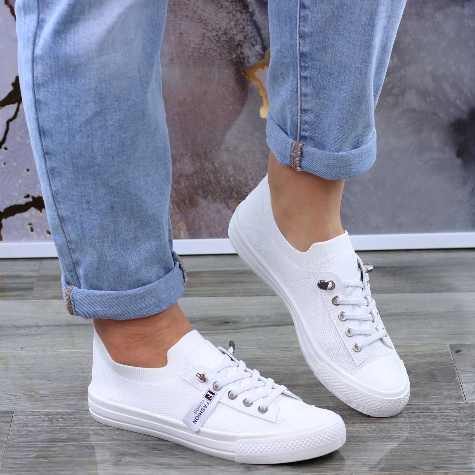 Białe trampki mięciutkie sznurowane slim na wygodnej podeszwie wykonane z mięciutkiej elastycznej tkaniny.
