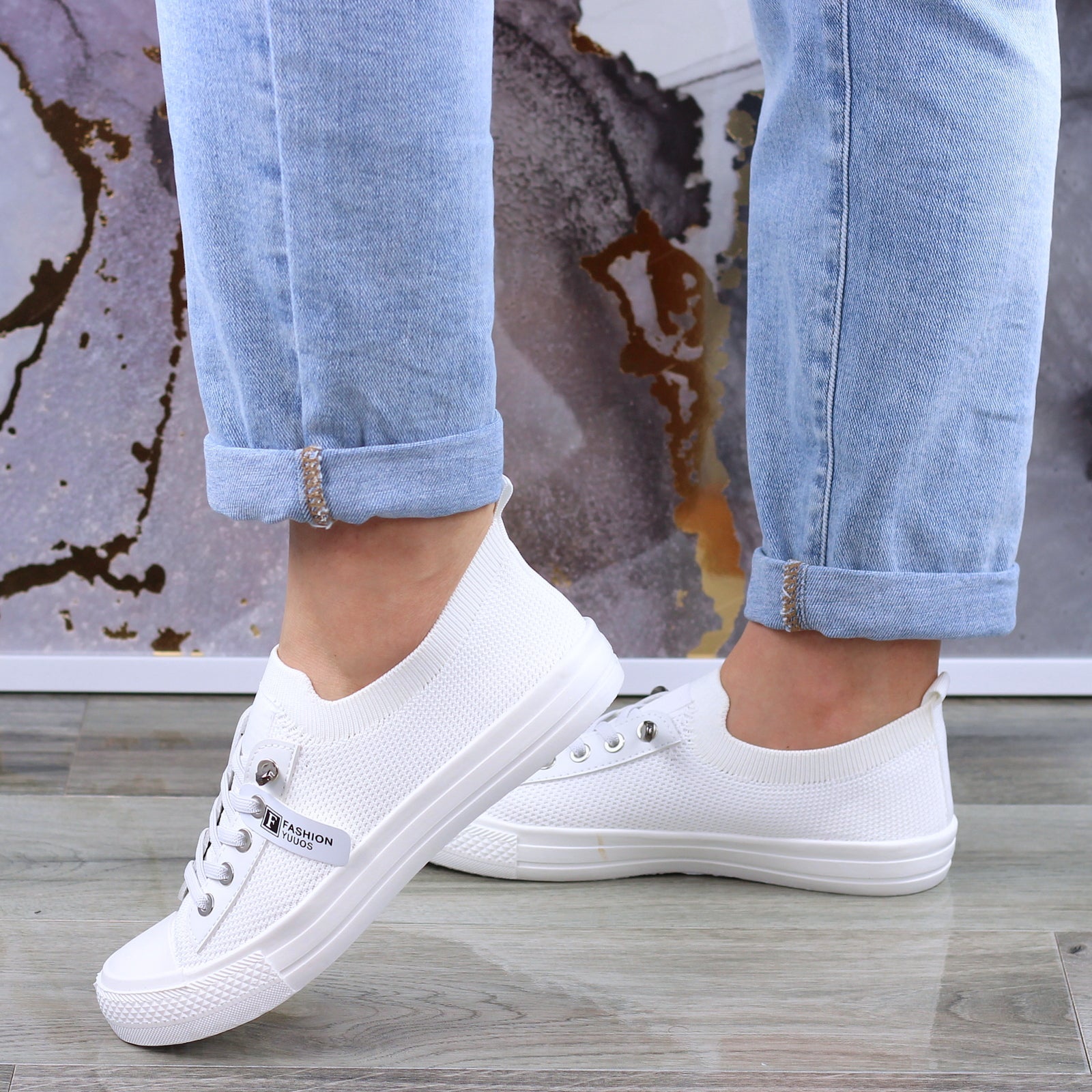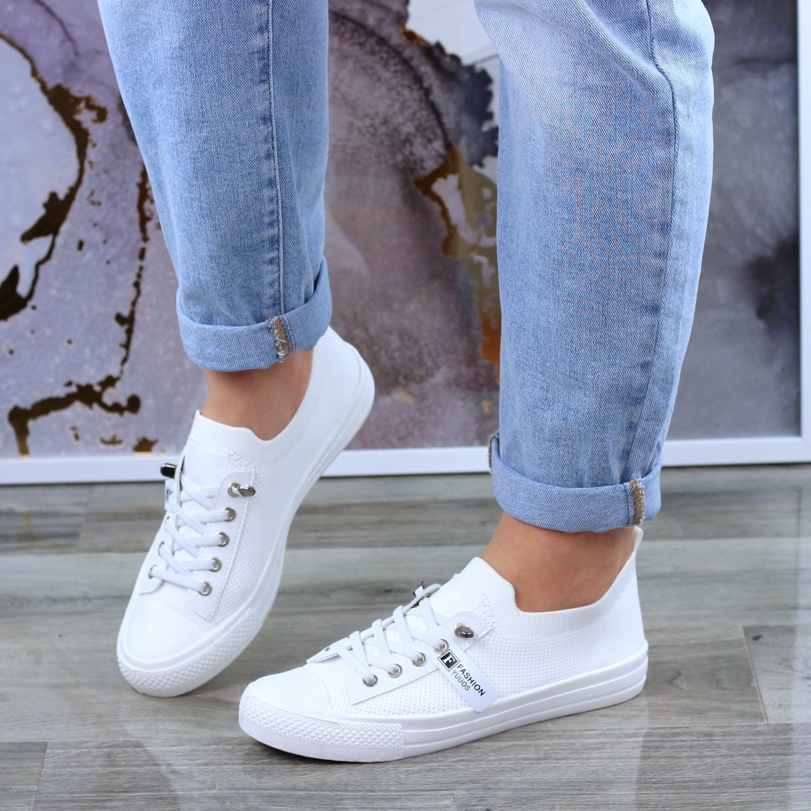 Miękkie, wygodne białe tenisówki elastyczne trampki damskie