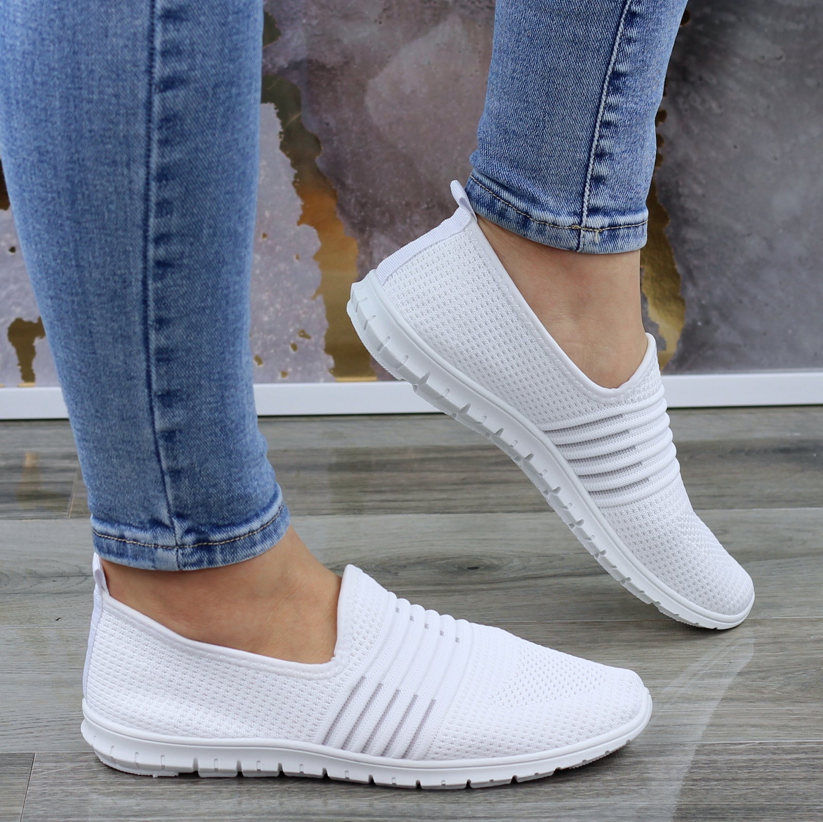 Białe trampki mięciutkie slim na wygodnej podeszwie wykonane z mięciutkiej elastycznej tkaniny.