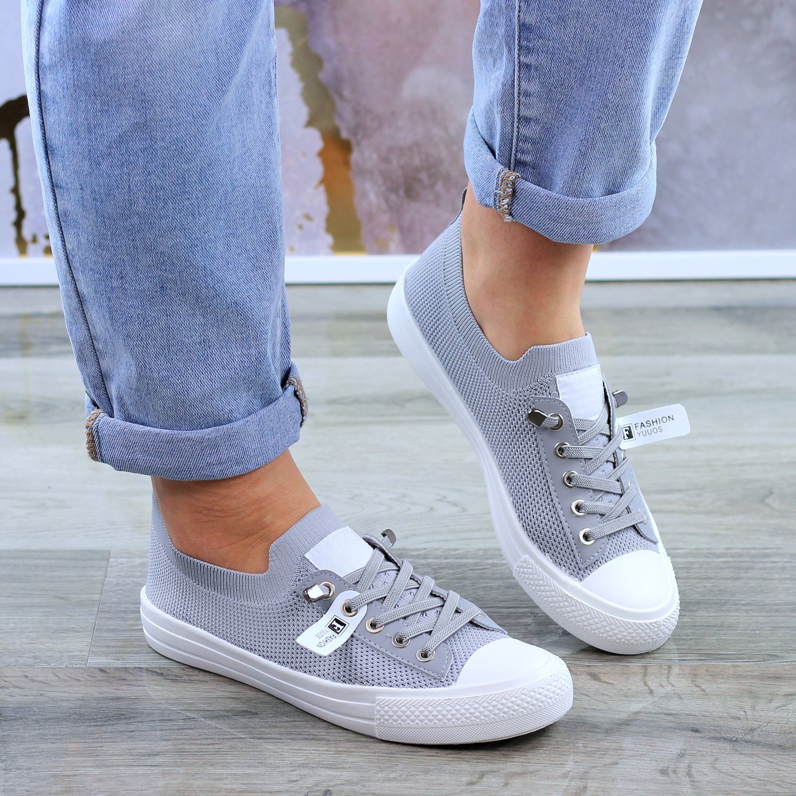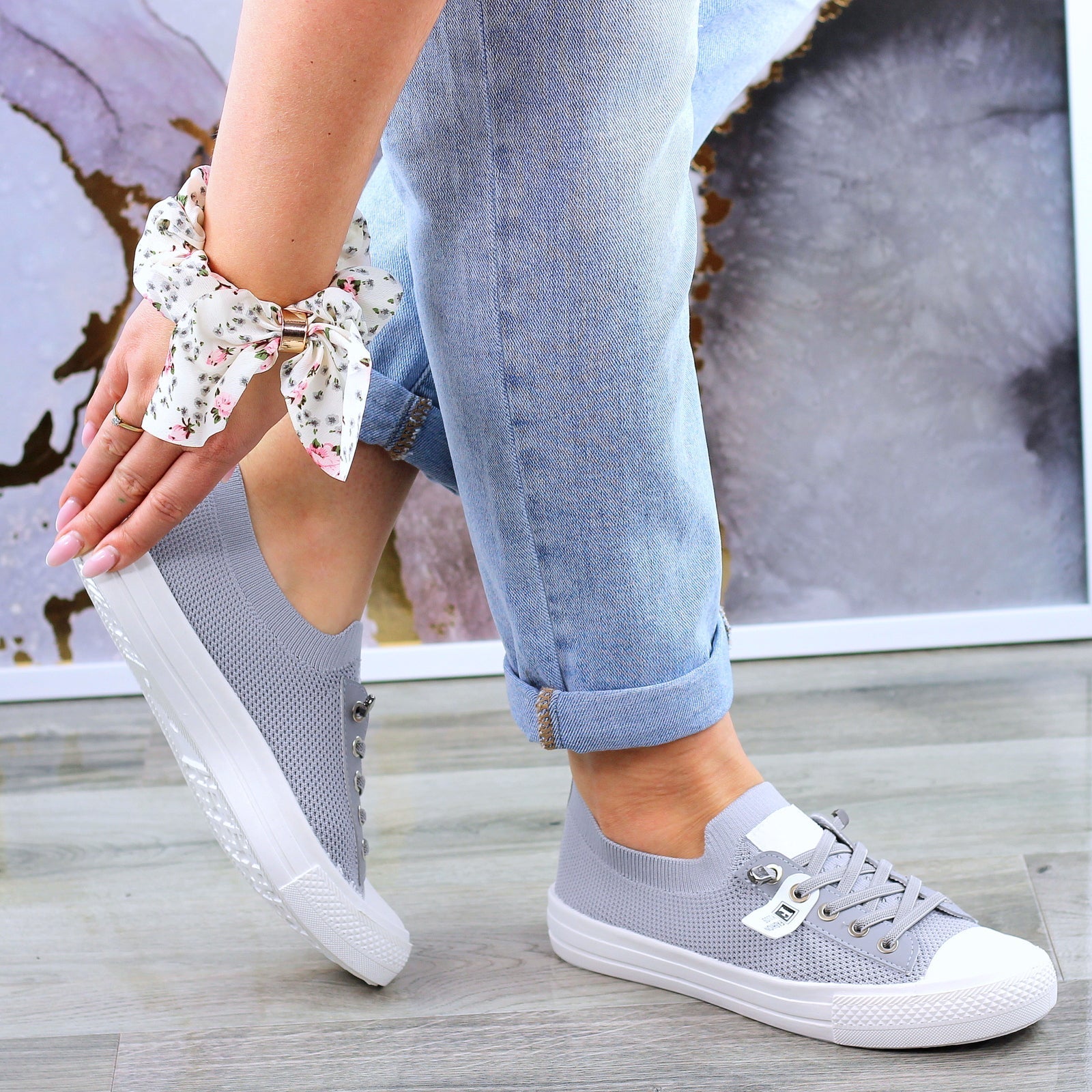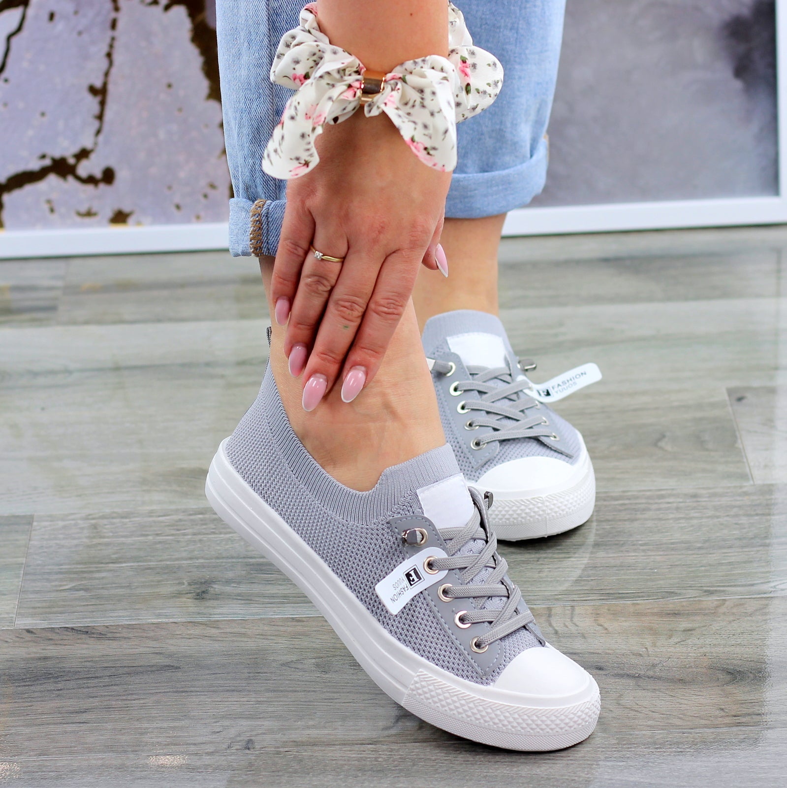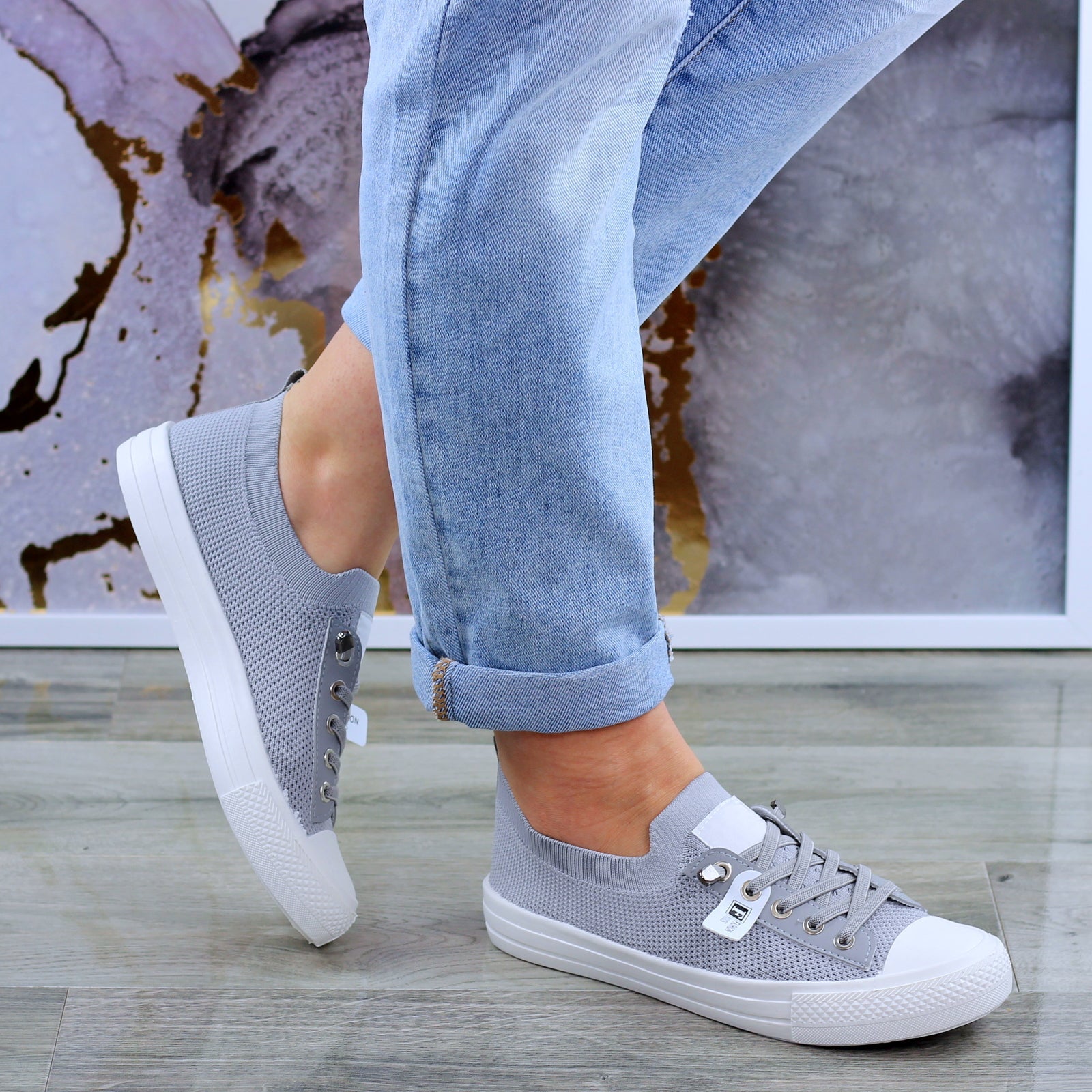 Miękkie, wygodne szare tenisówki elastyczne trampki damskie