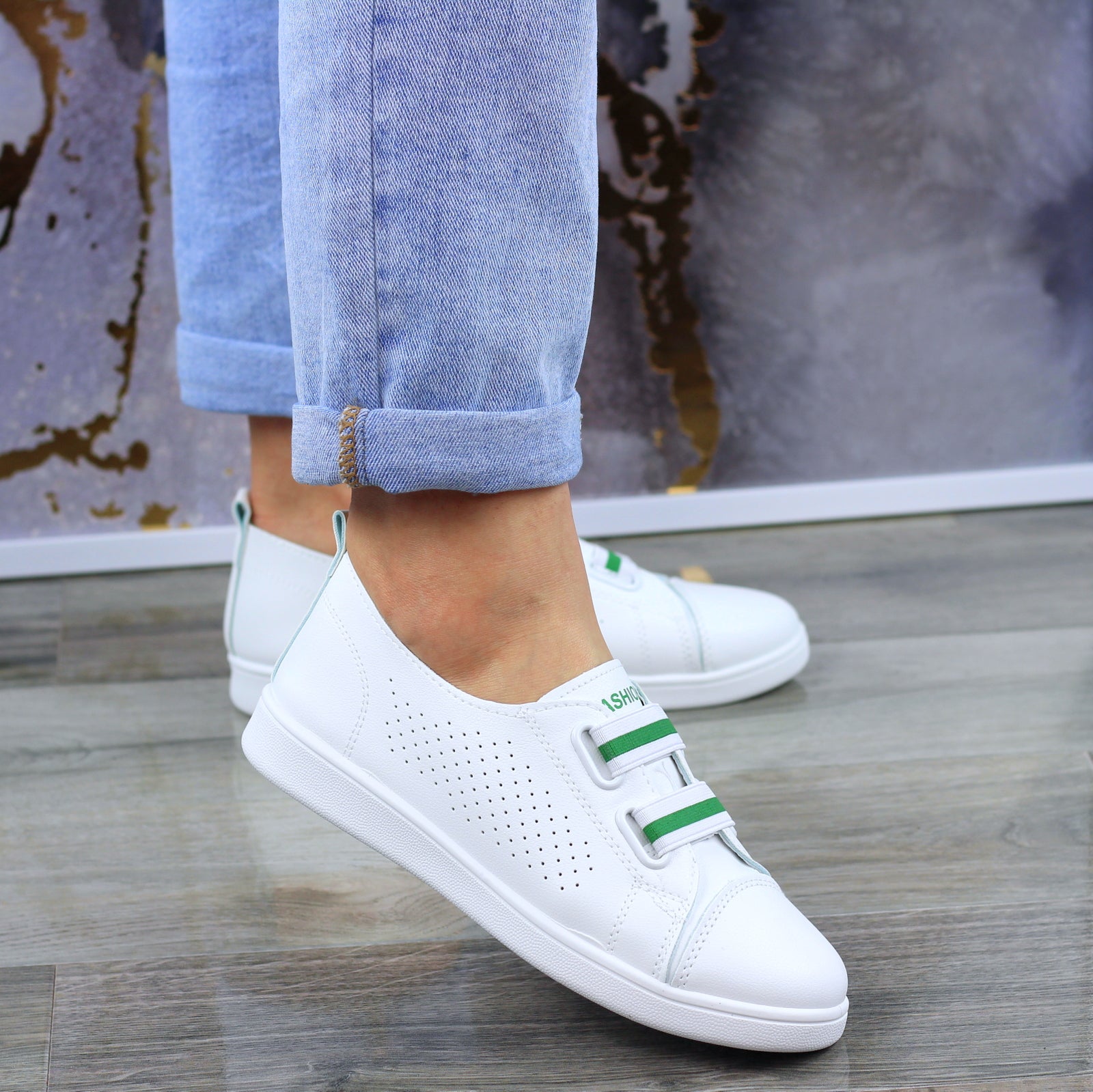 MODNE BIAŁE AŻUROWE SKÓRZANE TENISÓWKI TRAMPKI DAMSKIE WSUWANE FASHIONS green