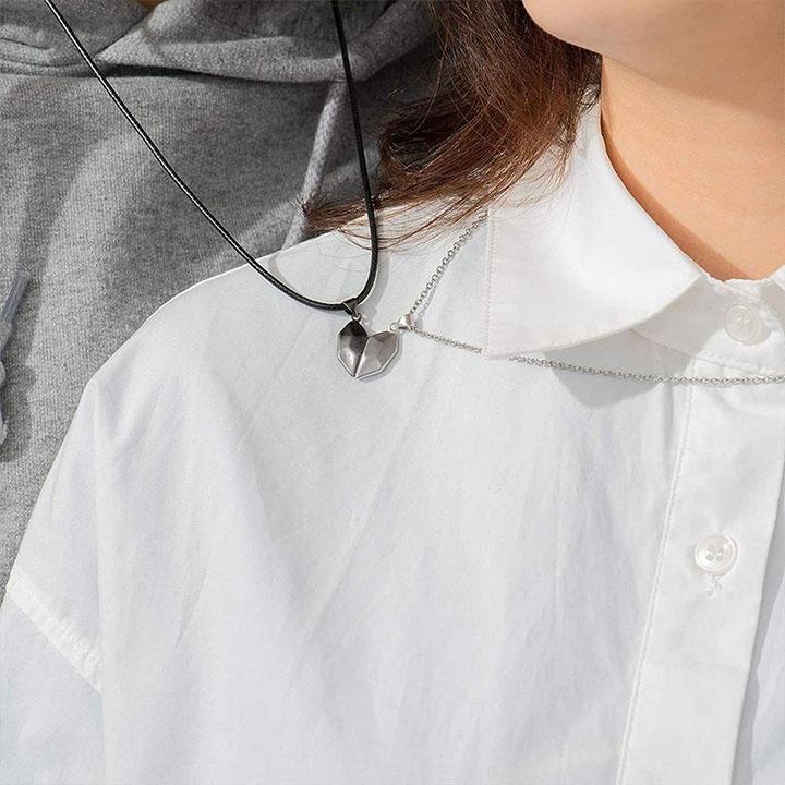 Miłosny naszyjnik dla par: Naszyjnik dla chłopaka i dziewczyny ma magnetyczną zawieszkę, która po zamknięciu przyciąga się nawzajem, tworząc kształt serca, dzięki czemu możesz nosić chłopięce serca swojej dziewczyny, gdziekolwiek jesteś