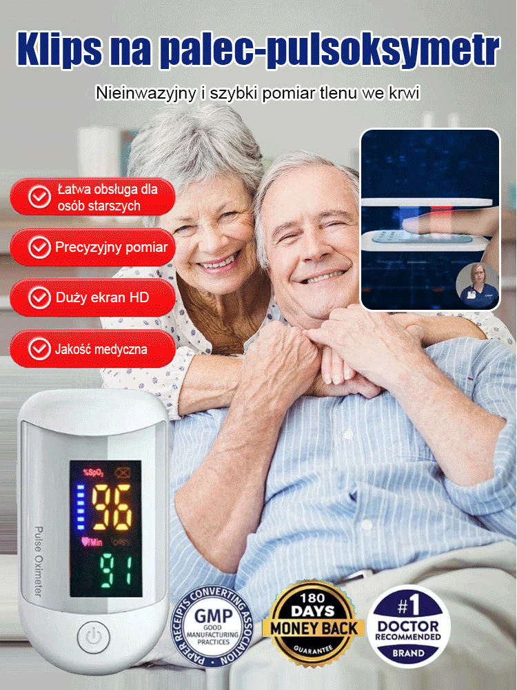 Pulsoksymetr o wysokiej rozdzielczości z klipsem na palec