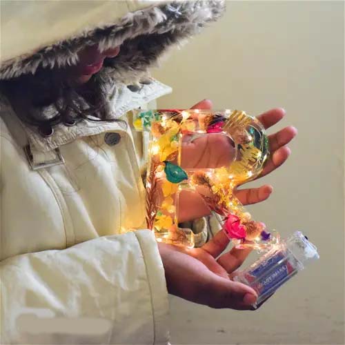 Duże litery lampy stołowej LED wykonane są z materiału przyjaznego dla środowiska. Jednocześnie litery wypełnione są pięknymi suszonymi kwiatami, światło litery jest odporne na uderzenia, przyjazne dla środowiska, wolne od zanieczyszczeń, pozbawione smaku i bezpieczne dla ludzkiego organizmu. Lampka nocna emituje miękkie, równomierne i pozbawione migotania światło, w którym możesz bezpiecznie spać.