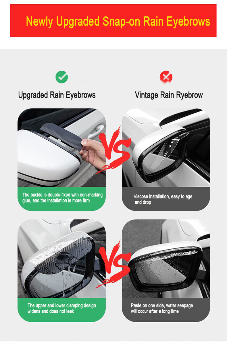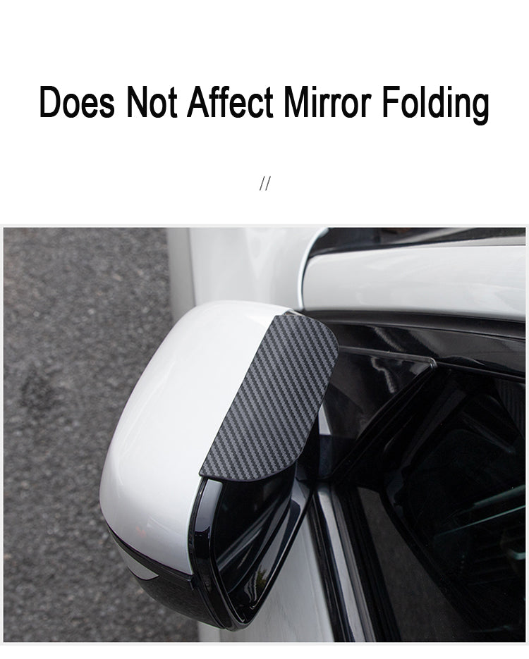 Przeciwdeszczowe listwy lusterka pomagają chronić przed deszczem, zapewniając lepszą widoczność do tyłu i bezpieczniejszą jazdę. W słoneczne dni listwy lusterka redukują osiadanie kurzu na lusterku wstecznym.