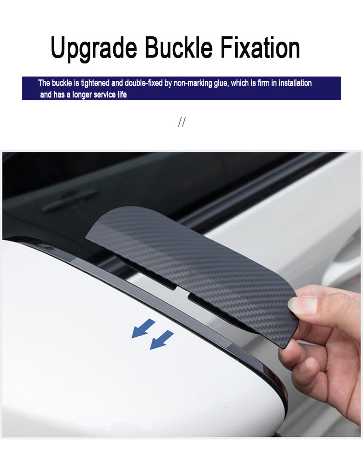 2 sztuki folii przeciwdeszczowej z nowymi klamrami, ze specjalnym klejem do samochodów pomocniczych, bezpieczne, proste i trwałe. Produkt wykonany jest z włókna węglowego, przyjaznego dla środowiska. Kolor czarny można dopasować do lusterek w dowolnym kolorze. Po montażu folia nie będzie utrudniać składania lusterka wstecznego i nie będzie zasłaniać pola widzenia.