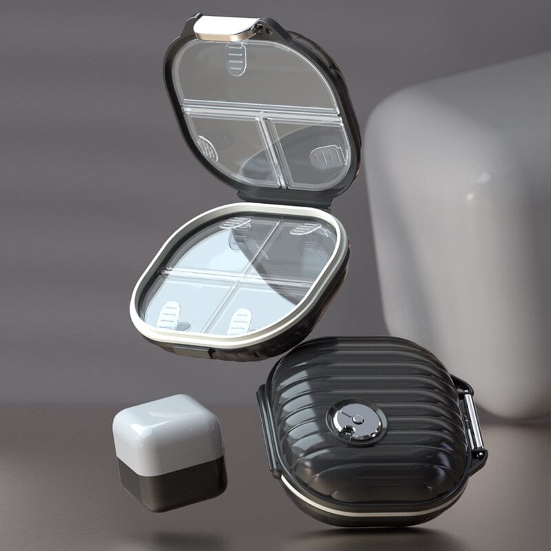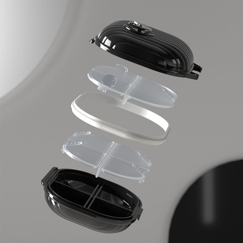 Uszczelnione przed wilgocią : Pudełko na pigułki jest wyposażone w pasek uszczelniający, dzięki czemu można je skutecznie uszczelnić, efekt konserwacji jest lepszy, a pigułka jest mniej podatna na zamoczenie.
