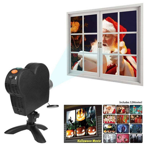 Projektor okienny na Boże Narodzenie i Halloween z 12 filmami
