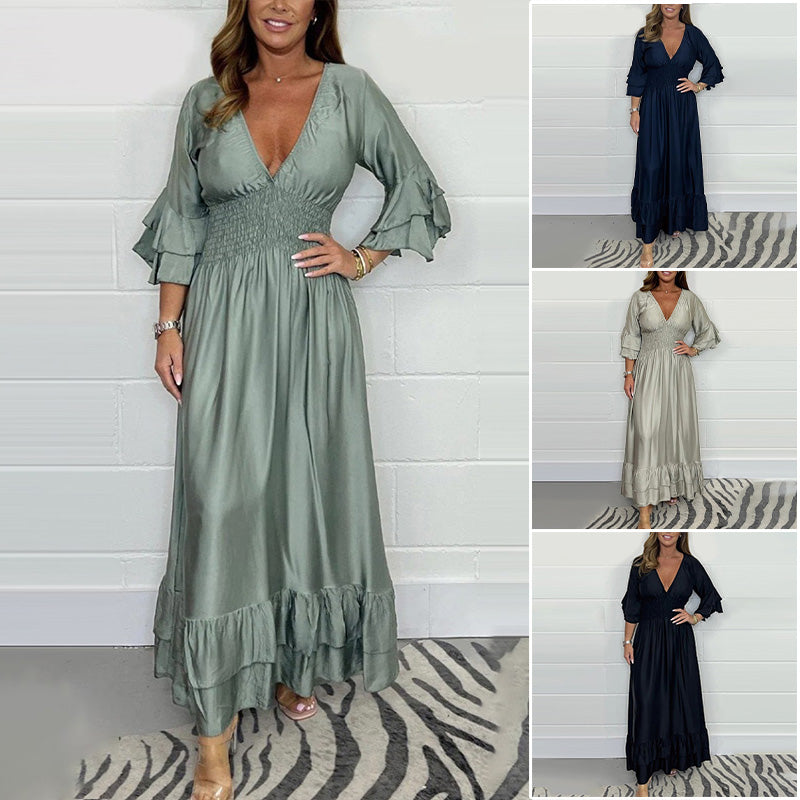 💖2024 Nowa sukienka maxi z satynowymi falbankami