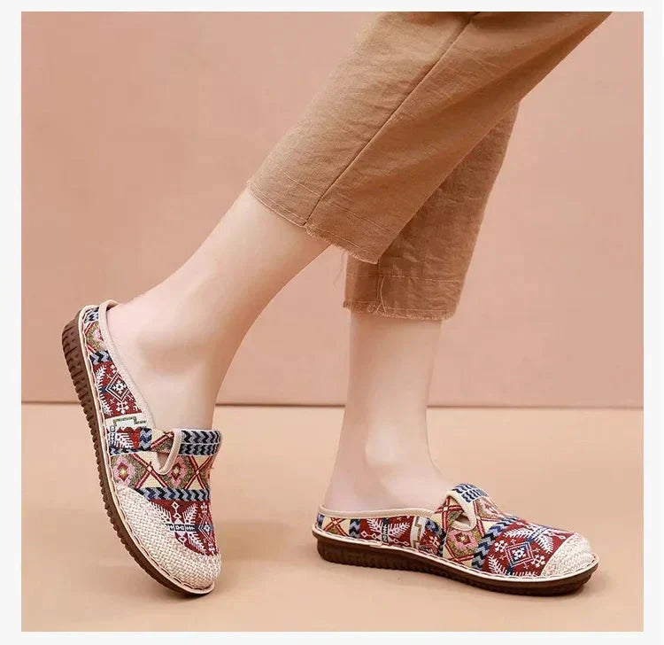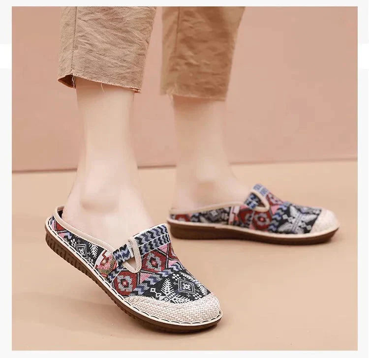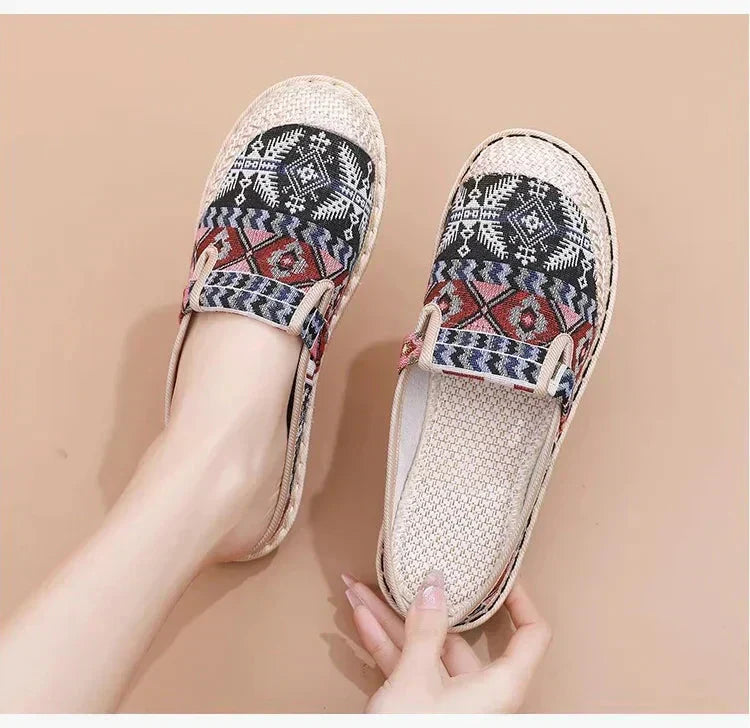To para butów codziennych wykonanych z bawełny i lnu. Cholewka wykonana jest z bawełny i lnu, który jest przewiewny i wygodny w codziennym noszeniu. Obcas butów jest krótszy, co ułatwia ich zakładanie i zdejmowanie. Kolorowy wzór cholewki w stylu etnicznym dodaje butom modnego charakteru. Miękka podeszwa zapewnia dobre wsparcie i wygodę podczas długich spacerów. Te buty są nie tylko piękne, ale również bardzo praktyczne, idealne do codziennego noszenia.