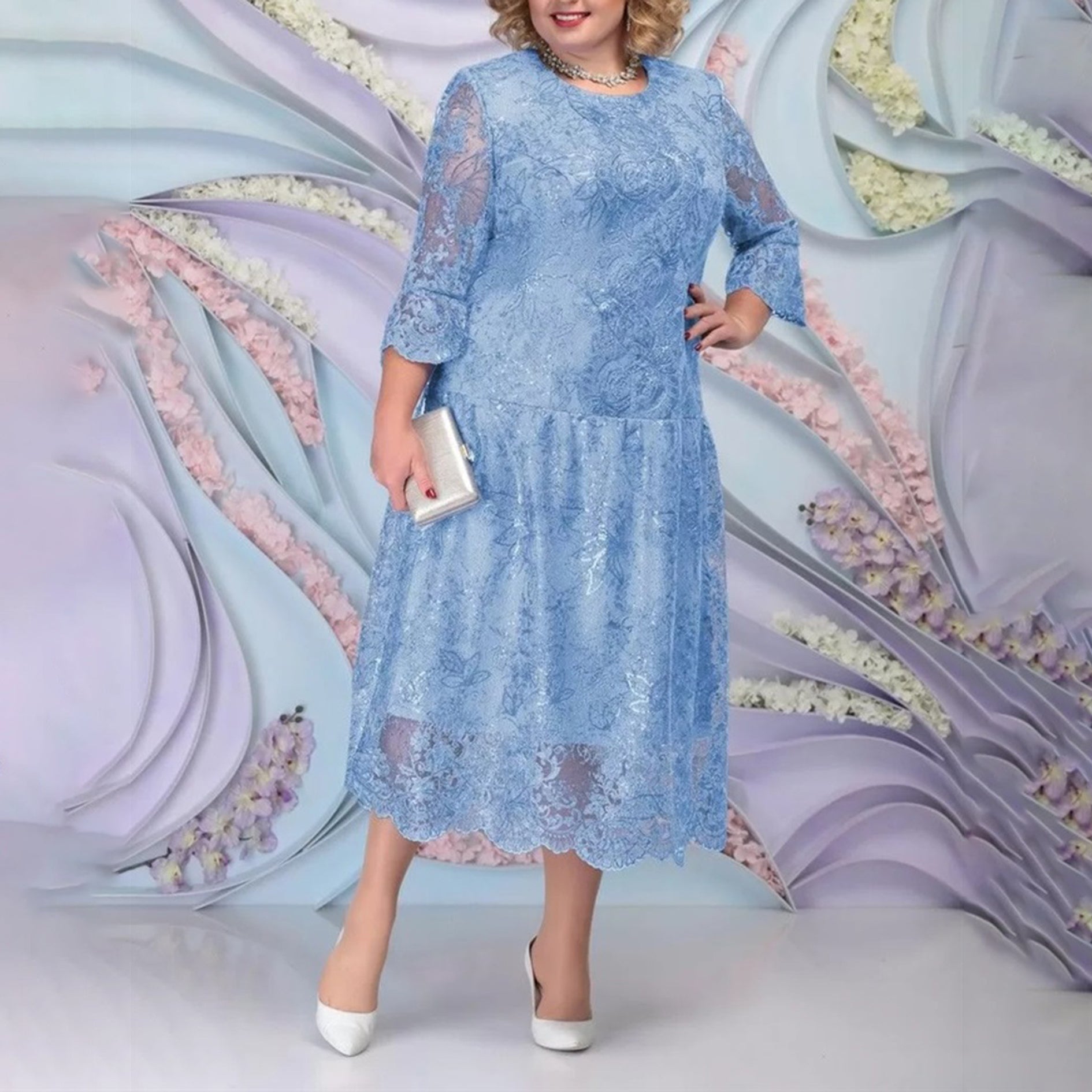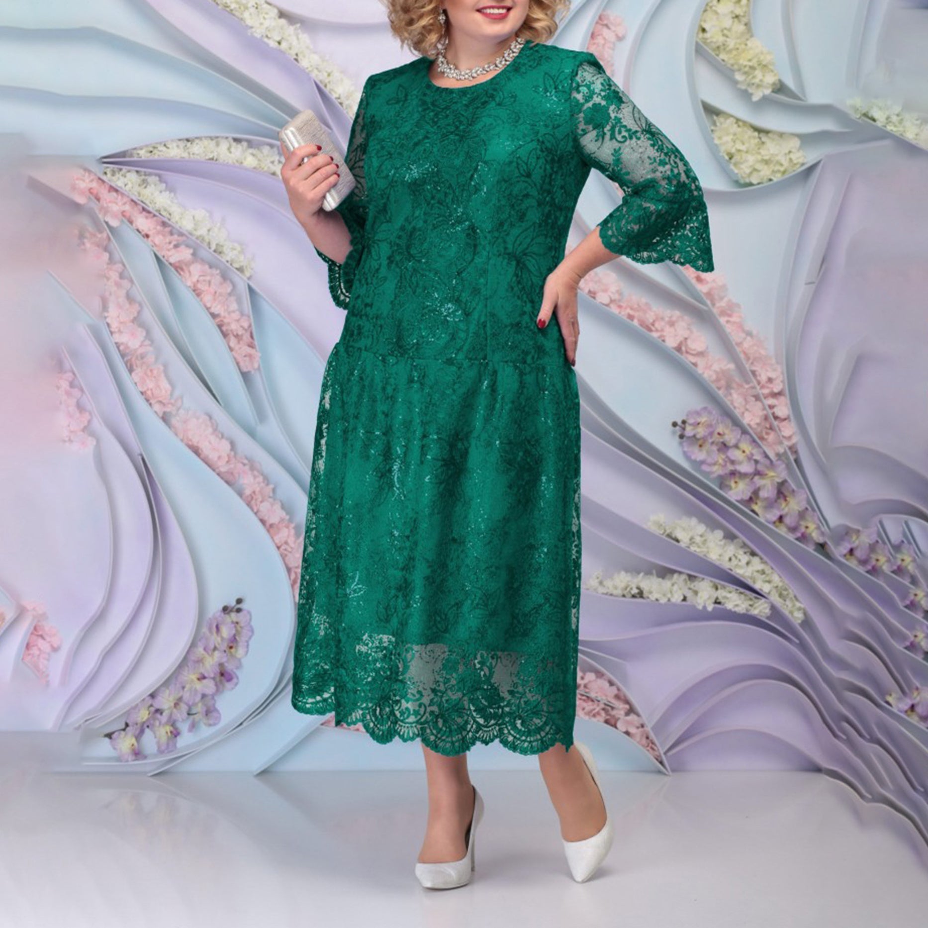 【Tkanina】 ---- Haftowana kwiecista koronka dodaje tej sukience odrobinę słodyczy. Ta damska sukienka midi ma dopasowany krój i elegancką sylwetkę.