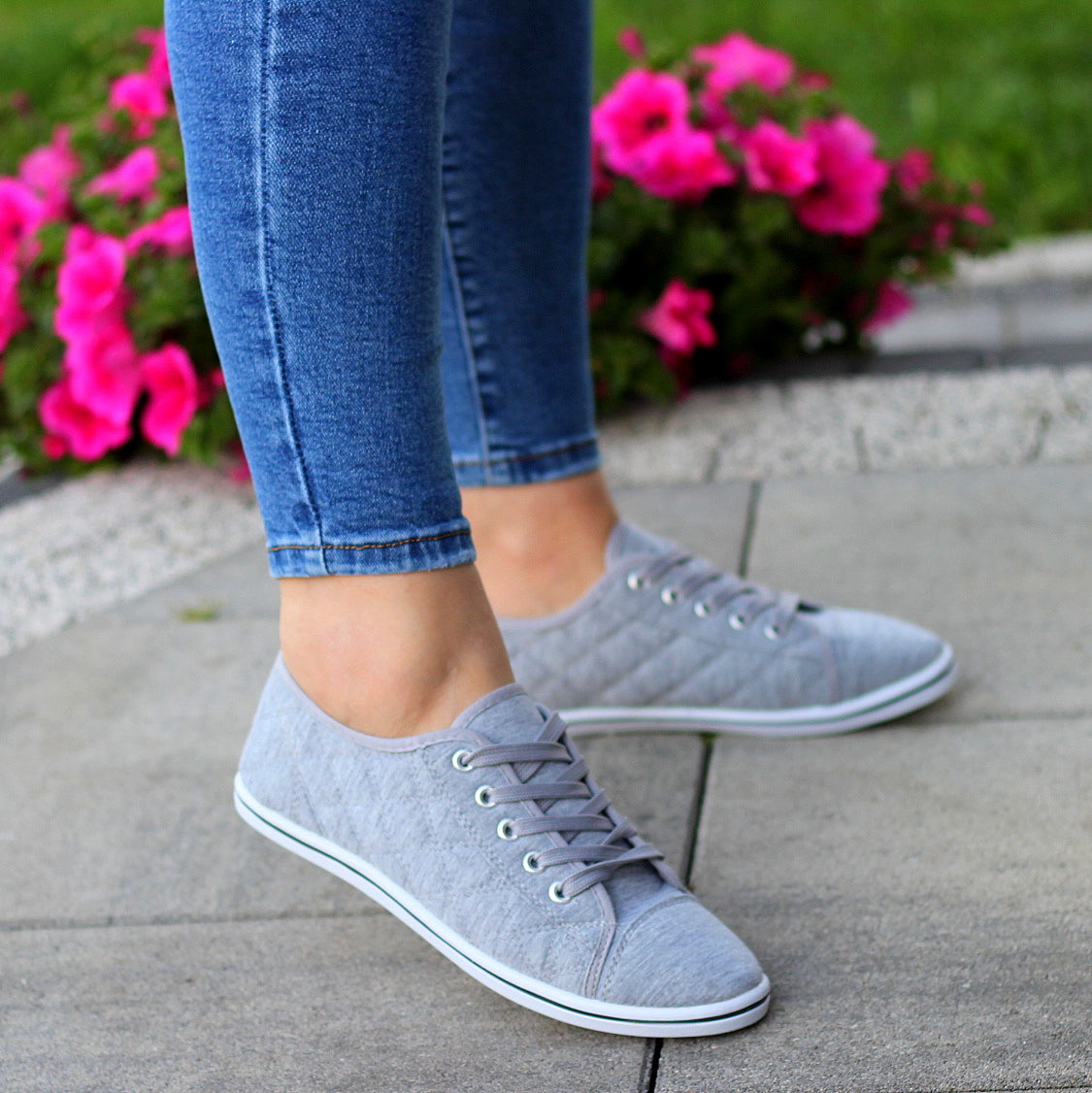 Szare ELEGANCKIE PIKOWANE TENISÓWKI TRAMPKI SLIM