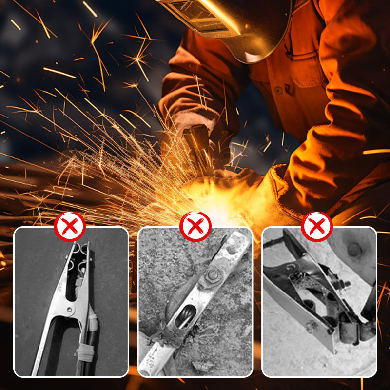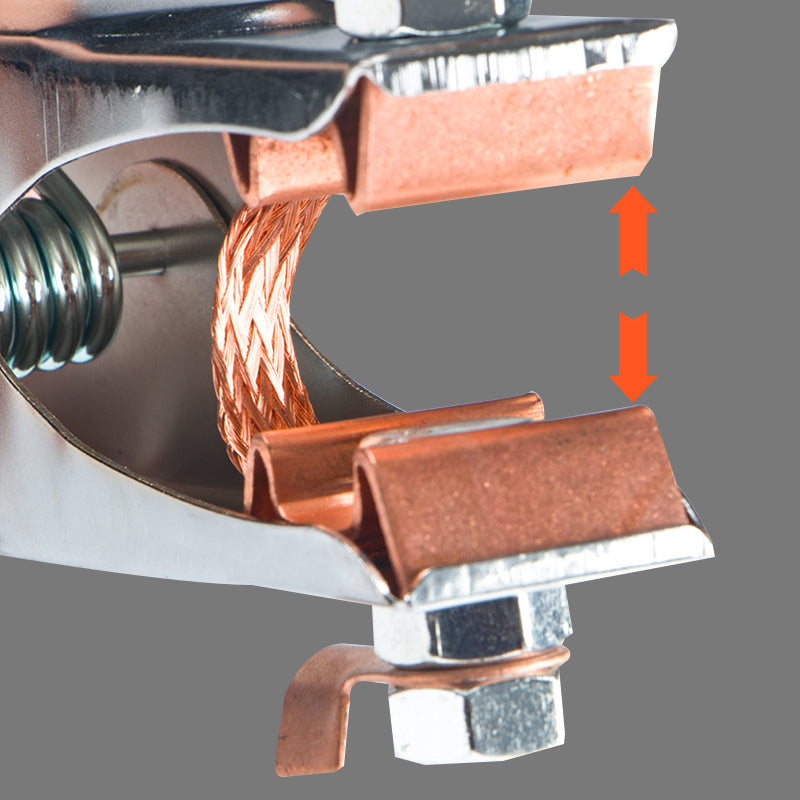 WYSOKI PROCENT, MAŁE WYTWARZANIE CIEPŁA: Cęgi zaprojektowano tak, aby skutecznie przewodzić prąd, wytwarzając minimalną ilość ciepła. Gwarantuje to stabilne i bezpieczne uziemienie podczas spawania, zapobiega przegrzaniu i zwiększa wydajność spawarki.