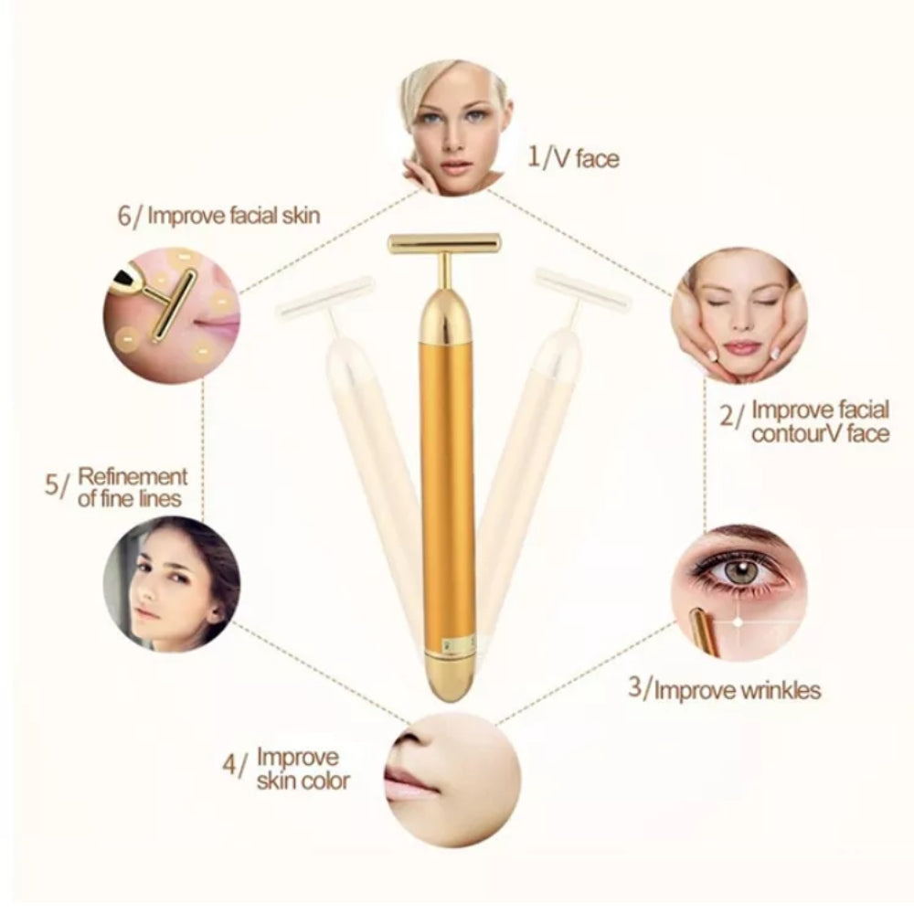 Masażer i odmładzacz do twarzy, który redukuje zmarszczki i linie mimiczne dzięki wibracjom o wysokiej częstotliwości (6000 drgań na minutę). Zaprojektowany specjalnie z myślą o kościach policzkowych, powiekach, podbródku i strefie T. Funkcja masażu stymuluje mięśnie twarzy w celu uzyskania efektu ujędrnienia, zapewniając przyjemne uczucie relaksu i dobrego samopoczucia. Ponadto wzmacnia działanie kremów i serum, ponieważ sprzyja głębszej penetracji skóry. Odmładza wygląd zmęczonej cery.