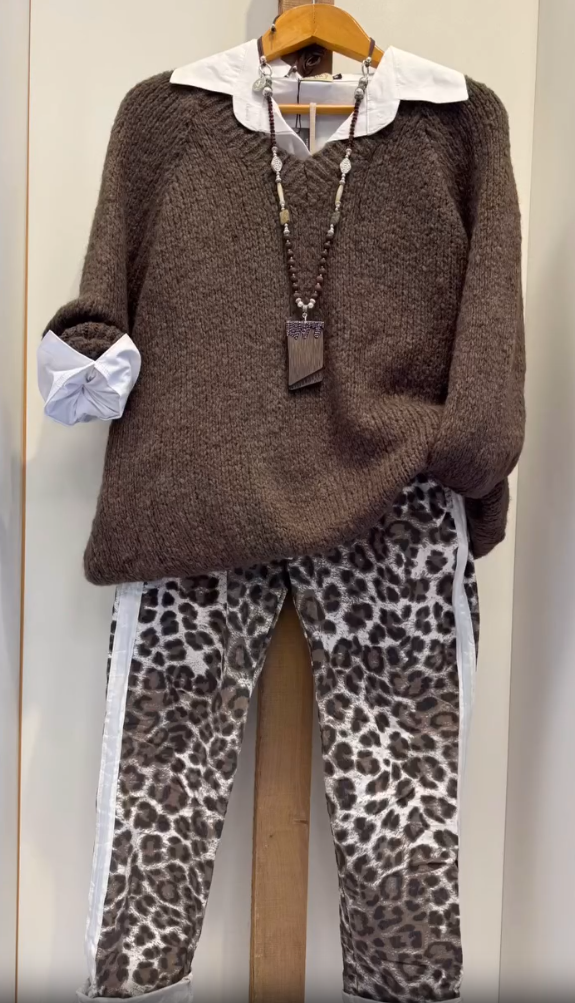Damski, codzienny garnitur, koszula, sweter i spodnie